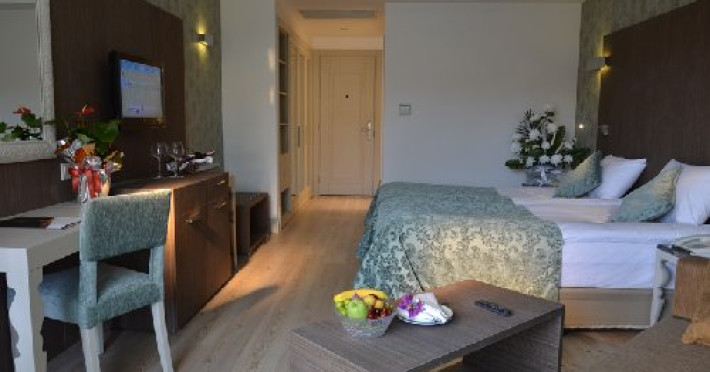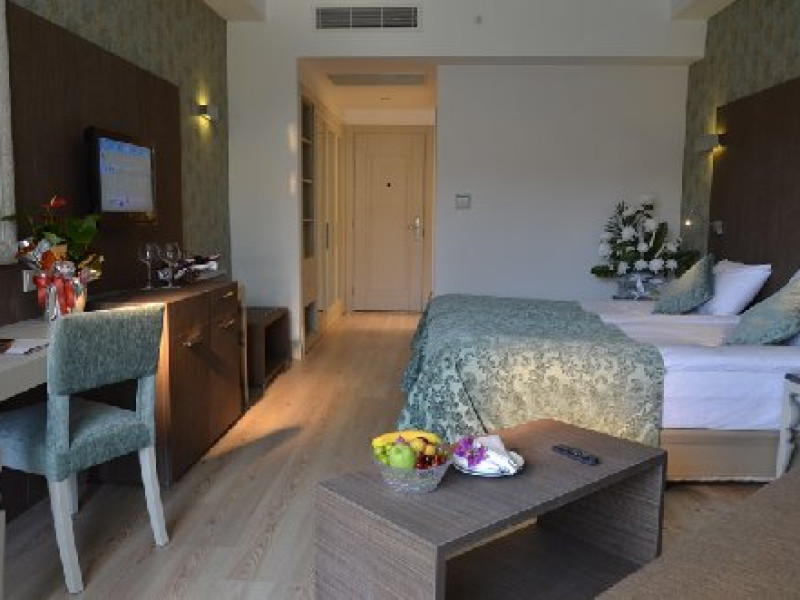 Construit in anul 2011, hotelul are in total 208 camere repartizate astfel: 170 camere standard (suprafata 32 mp, capacitate maxima 3 pers.); 2 camere pentru persoane cu dizabilitati; 34 camere family (suprafata 40 mp, capacitate maxima 4 pers.), cu doua dormitoare (un dormitor cu pat matrimonial si unul cu doua paturi separate) si o baie cu dus; 2 suite (suprafata 72 mp), cu un dormitor cu pat matrimonial, living si o baie cu cada si dus. Localizare: la 160 m de plaja, la 70 km de centrul orasului Antalya si la 60 km de aeroport. Hotelul se afla la 7 km de Side si 11 km de Manavgat. Dotari camera: telefon, TV LCD satelit, seif (cu plata), minibar, aer conditionat centralizat, baie cu dus, uscator de par, parchet laminat, balcon. Alte informatii: minibarul contine apa si bauturi racoritoare, la sosire; se reumple zilnic cu apa. Facilitati hotel: restaurant principal cu terasa, 2 restaurante a la carte (turcesc, italian), baruri, patiserie, piscina exterioara, piscina pentru copii, piscina interioara, aquapark cu 2 tobogane, tenis de masa, darts, boccia, volei pe plaja, step, aerobic, sala de fitness, gimnastica in apa, cinema, sali de conferinte, baie turceasca, sauna, programe de animatie in cursul zilei si al serii, acces internet wireless in lobby, club pentru copii (4-12 ani). Servicii cu plata: babysitting, room service, telefon, fax, masaje, servicii medicale, sporturi acvatice, fotograf, sala de jocuri, internet cafe, inchirieri masini, coafor, magazine, bauturi de import, sucuri proaspete de fructe, bauturile servite dupa miezul noptii. Plaja cu nisip fin. Sezlongurile, umbrelele si prosoapele sunt gratuite. Alte informatii: - pentru restaurantele a la carte este necesara rezervare la biroul de relatii cu clientii, pana la ora 12.00 in ziua dinaintea cinei; - in functie de conditiile meteorologice, programul de functionare a restaurantelor si barurilor se poate modifica; - carduri acceptate: Visa, Mastercard, Eurocard. Hotelul isi rezerva dreptul de a modifica conceptul in timpul sezonului fara a anunta in prealabil aceste modificari.
