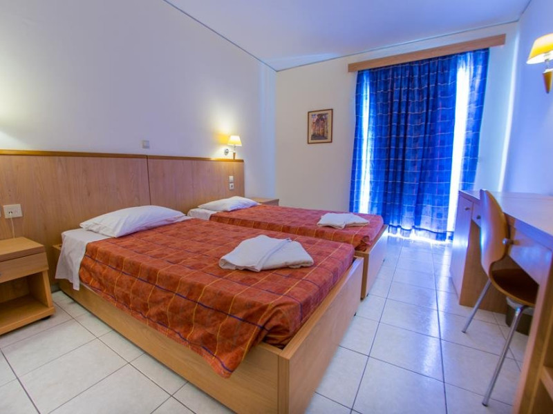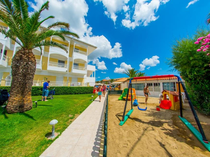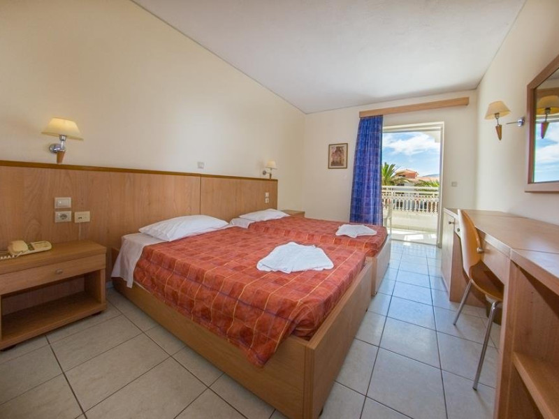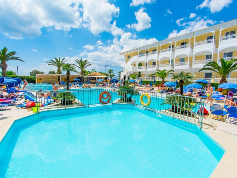 Localizare: Hotelul este situat in Laganas, unul dintre cele mai populare si frumoase statiuni turistice din Zakynthos, la 50 m de plaja care se intinde pe 9 km, una din cea mai lungi din Grecia. Centrul localitatii Laganas este la 700 de metri distanta si orasul Zante este la 7 km distanta si ambele sunt deservite de autobuze si taxiuri.