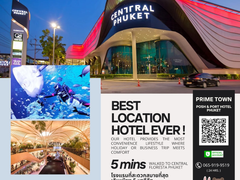 Located in Phuket Town's business district, PRIME TOWN - Posh & Port Hotel PHUKET offers air-conditioned rooms with free WiFi and private bathrooms. Guests can enjoy an outdoor pool, fitness center, sauna, and garden. The hotel provides complimentary parking, a 24-hour front desk, luggage storage, and laundry facilities. Rooms feature flat-screen TVs, electric kettles, and complimentary bottled water. Some rooms include a balcony or terrace. The hotel offers tour/ticket assistance, taxi and car hire services, and a vending machine. An airport shuttle is available for a surcharge. Dining options include a poolside bar. Nearby attractions include Naka Weekend Market and Central Festival Phuket Shopping Center. The PRIME TOWN - Posh & Port Hotel PHUKET is a hotel.