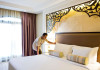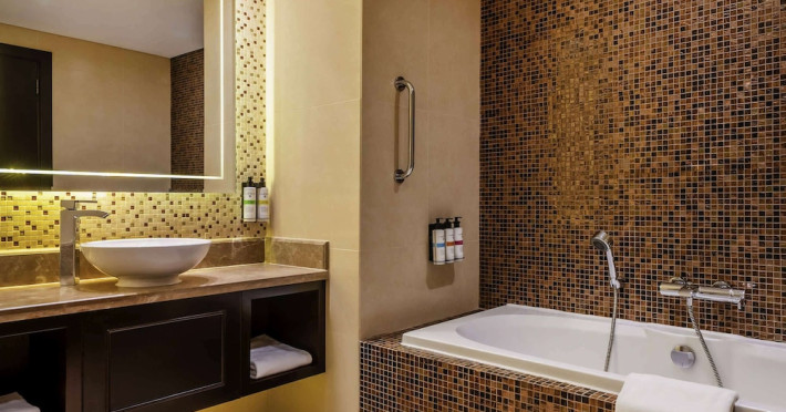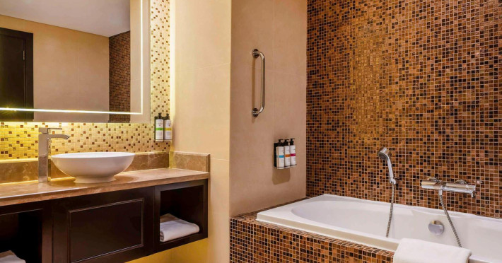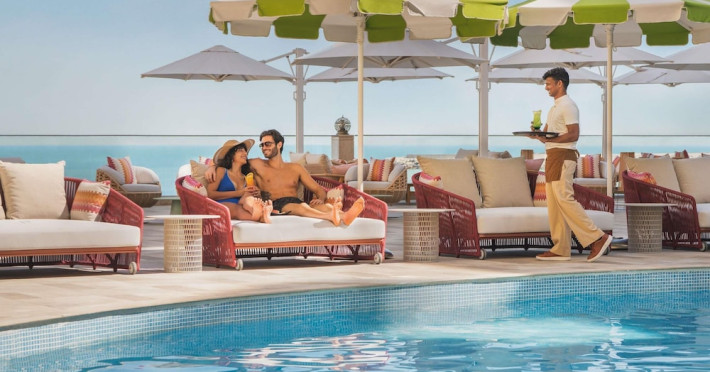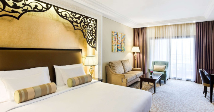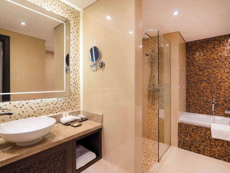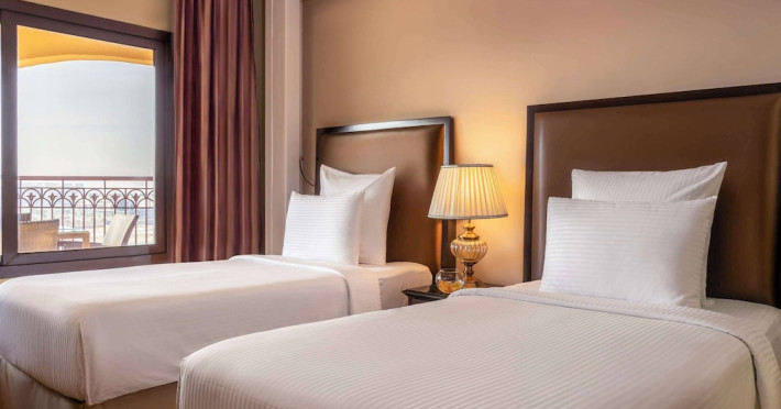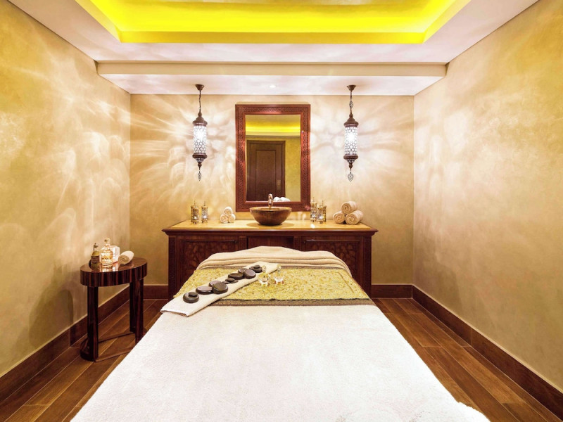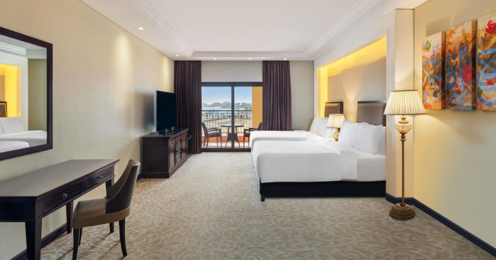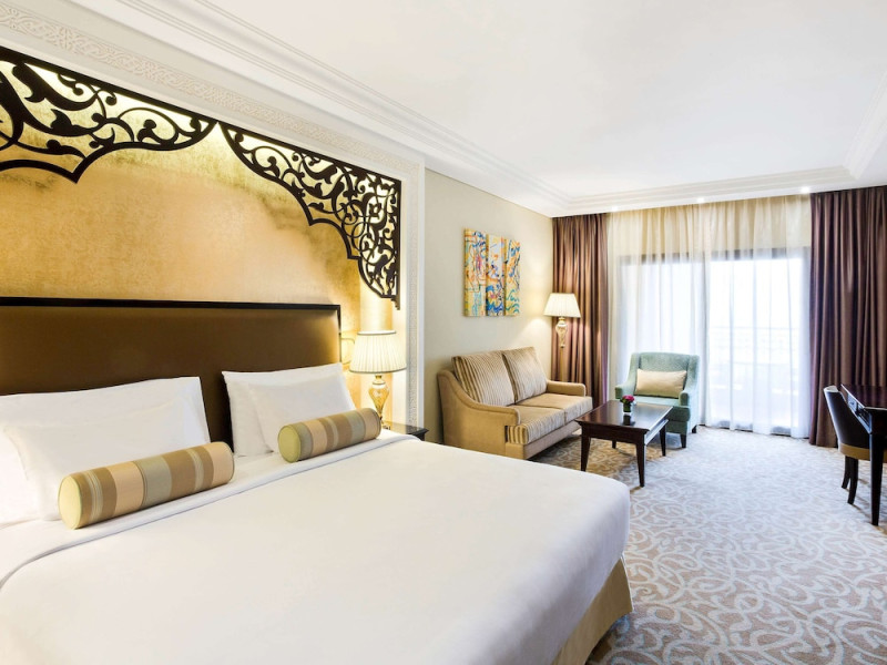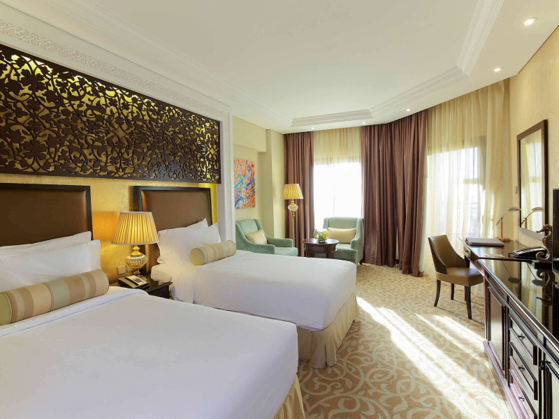 Pullman Al Marjan Island Resort, a five-star, alcohol-free resort on Ras Al Khaimah's first man-made island, offers stunning Arabian Gulf views and is located 45 minutes from Dubai. The resort boasts a luxurious La'mar spa (with separate ladies' and gents' areas), two indoor swimming pools, a health club, an outdoor tennis court, and a private beach. Guest rooms feature minibars, flat-screen TVs, memory foam beds with premium bedding, and complimentary Wi-Fi. Dining options include Al Liwan Restaurant (international cuisine), and other restaurants offering Lebanese and Mediterranean options. A coffee shop/cafe and 24-hour room service are also available. Additional amenities include a business center, complimentary newspapers, meeting rooms, free valet parking, a roundtrip airport shuttle (surcharge), concierge services, babysitting (surcharge), and an area shuttle (surcharge). Al Hamra Mall is 9 km away. The nearest airport is Ras al Khaimah (RKT-Ras al Khaimah Intl.), 42 km away. The resort is closed from June 15, 2025, to September 15, 2025 (dates subject to change). The Pullman Al Marjan Island Resort is a Beach Resort, Business, Child Friendly, Full Service, Health Resort, Honeymoon, Resort, Spa Resort, Sports Resort, Tourist hotel. The nightlife/restaurants are located in the hotel.