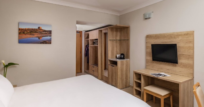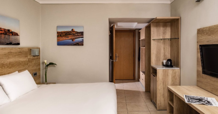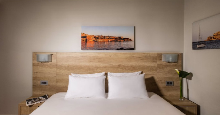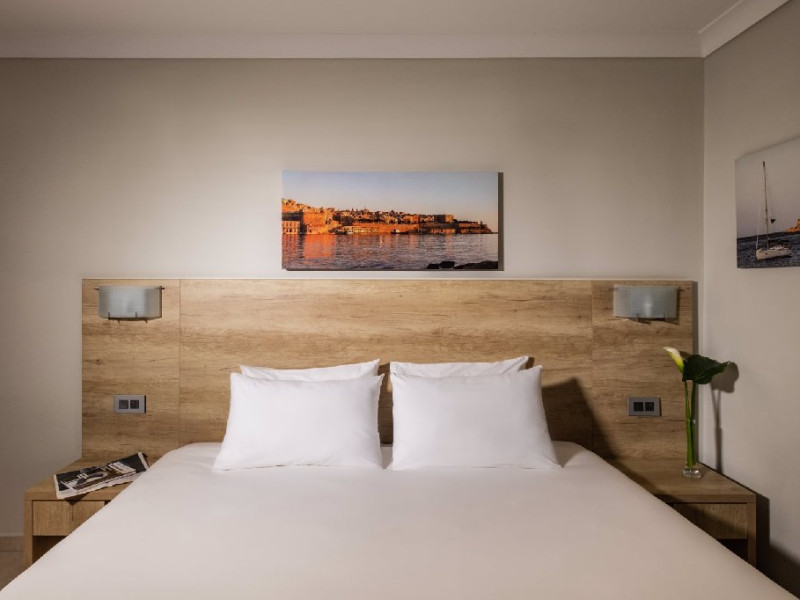 Hotel Qawra (Aura) Palace Resort & Spa 4* (Qawra St. Pauls Bay) Localizare: este situat pe malul marii in statiunea turistica Qawra, la 25 metri de statia de autobuz si la 700 metri de centru statiunii Bugibba si la aproximativ 13 km de Malta International Airport. In apropierea hotelului se afla multe magazine, baruri si restaurante. Facilitati hotel: printre facilitatile hotelului se numara restaurant, lounge bar, gelaterie, piscina exterioara, piscina interioara cu apa incalzita, jacuzzi, sauna, sezlonguri si umbrele la piscina, sala de jocuri, sala de fitness, salon de coafura/frizerie, mini teren de golf, centru SPA. Facilitati camere: camerele sunt dotate cu baie proprie, A/C, TV prin satelit, telefon direct, uscator de par, mini-bar, seif contra cost, fier de calcat la cerere, facilitati pentru ceai si cafea, balcon. Website: https://www.qawrapalacemalta.com/