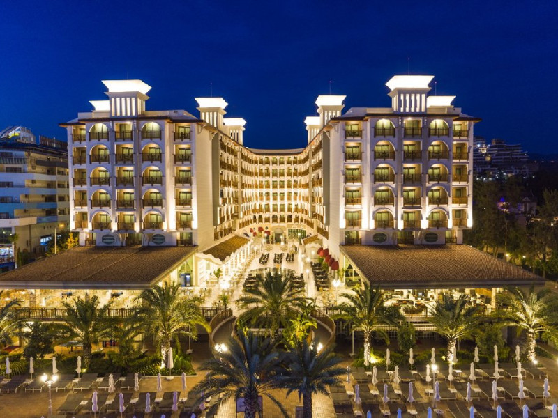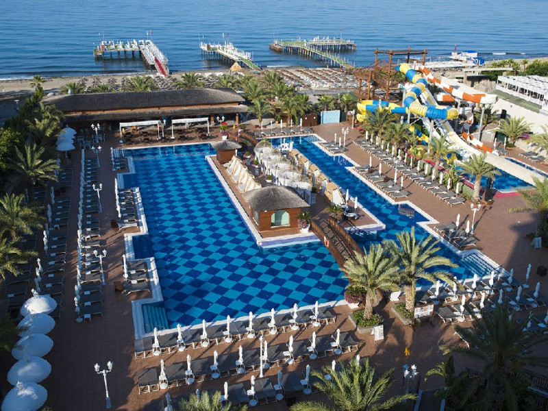 Localizare: Hotelul este situat pe plaja, la aproximativ 12 km distanta fata de centrul orasului Alanya si aproximativ 114 km de Aeroportul International Antalya.
