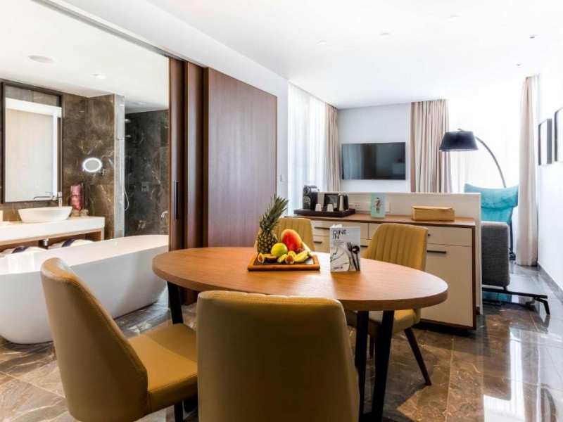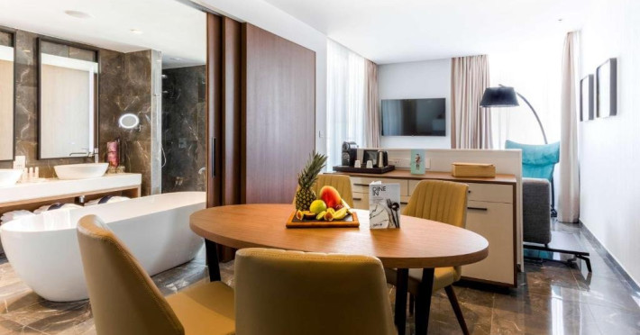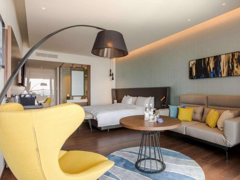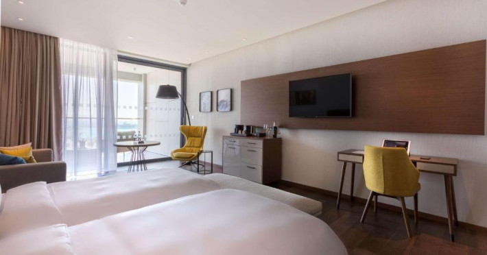 Dotari camera: Bucurati-va de vederi superbe ale golfului Larnaca din toate camerele noastre, care sunt frumos proiectate, cu culori de pamant si mobilier din lemn. Toate camerele vizeaza un confort optim si oglindesc atmosfera calda a orasului si cultura locala. Facilitati hotel : Bucurati-va de o masa delicioasa in intimitatea camerei dvs. cu room service 24 de ore pe zi sau vizitati restaurantul si barurile noastre pentru a socializa la un cocktail. Ramaneti activ in timpul vizitei dvs. cu sala noastra de fitness moderna si piscina in aer liber si faceti timp pentru a va relaxa la centrul nostru confortabil de wellness, care ofera o baie de aburi, sauna si zona de relaxare. Web site: https://www.radissonhotels.com/en-us/hotels/radisson-blu-larnaca