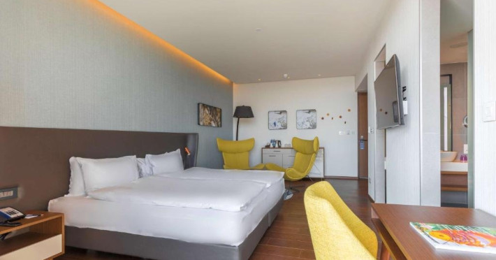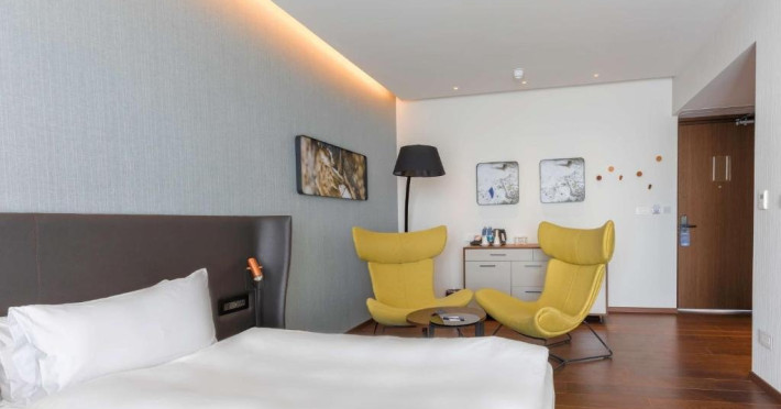 Descriere: Descoperiti eleganta si cultura la Hotelul Radisson Blu, Larnaca. Situat pe tarmul sudic pitoresc al Ciprului, hotelul de lux Radisson Blu, Larnaca ofera un refugiu elegant in inima orasului. Ne aflam la doar cateva minute de Aeroportul International Larnaca si oferim acces direct la cultura moderna si veche , precum si la industria portuara infloritoare. Conceput pentru a depasi nevoile calatorilor contemporani de afaceri si de agrement, deopotriva, Radisson Blu ofera 106 camere si apartamente frumos amenajate. Cladirea cu 16 etaje redefineste orizontul orasului Larnaca si ofera unitati de cazare placute cu o colectie de localuri culinare.