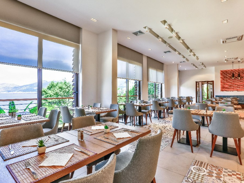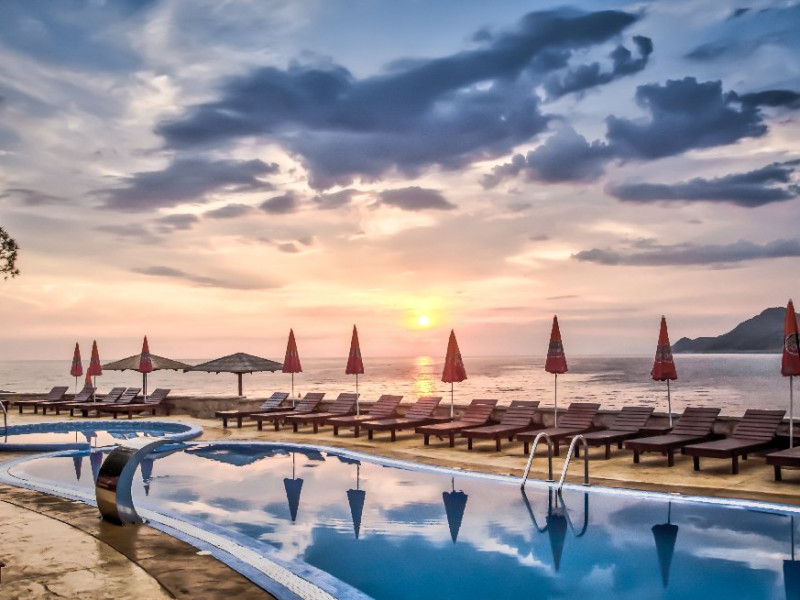 Recomandat pentru o escapada romantica, in special pentru cupluri. Privelisti frumoase de pe terasele hotelului, cine in gradina si o baie in piscina cu vedere, toate acestea vor ramane cu siguranta o amintire de neuitat. Va invitam sa va alaturati. ________________________________________ Hotel -O receptie deschisa nonstop cu un hol spatios, un restaurant principal cu privelisti frumoase la mare, taverna Konoba care serveste bucatarie locala, barul Sunset, doua piscine exterioare (jeturi de apa, hidromasaj), o piscina separata pentru copii, o terasa la soare cu sezlonguri si umbrele, o gradina, o sala de joaca, o zona de wellness si spa (tratamente de infrumusetare, sala de masaj, coafor - contra cost), servicii de spalatorie si calcatorie la cerere (contra cost). Parcare privata gratuita este disponibila la fata locului (nu este necesara rezervarea). -Acces Wi-Fi gratuit. ________________________________________ Localizare Acest hotel atractiv este situat direct pe mare, cu privelisti frumoase, in centrul orasului turistic Dobra Voda. Proprietatea se mandreste cu vegetatie abundenta, o gradina si palmieri. Numeroase magazine, baruri si restaurante se afla in apropiere. Durata transferului de la Aeroportul Podgorica este de aproximativ 1,5 ore. ________________________________________ Plaja -Langa hotel se afla o plaja privata cu pietris si platforme de piatra. -Sezlongurile si umbrelele sunt oferite gratuit. ________________________________________ Tipuri de mancare si mese: Micul dejun si cina sunt servite in stil bufet in fiecare zi. ________________________________________ Program sportiv si de divertisment -Exista o mini-gradina zoologica la fata locului. Wind Rose Hotel Resort are terenuri de sport mari unde puteti juca volei, fotbal, tenis sau baschet. De asemenea, sunt disponibile echipamente de badminton si tenis pentru inchiriere. Sporturi nautice sunt disponibile pe plaja (contra cost). ________________________________________ Camere Camerele sunt dotate cu: -Balcon/terasa -Baie: Dus | Uscator de par -Vedere: Imprejurimi -Facilitati camere: Aer conditionat individual | Seif | Minibar (contra cost) | Telefon | TV prin satelit.