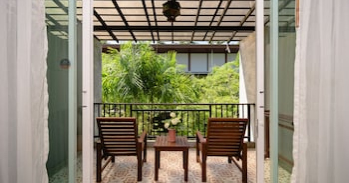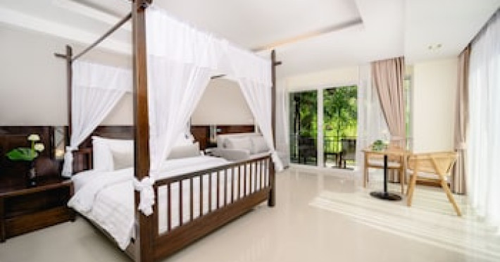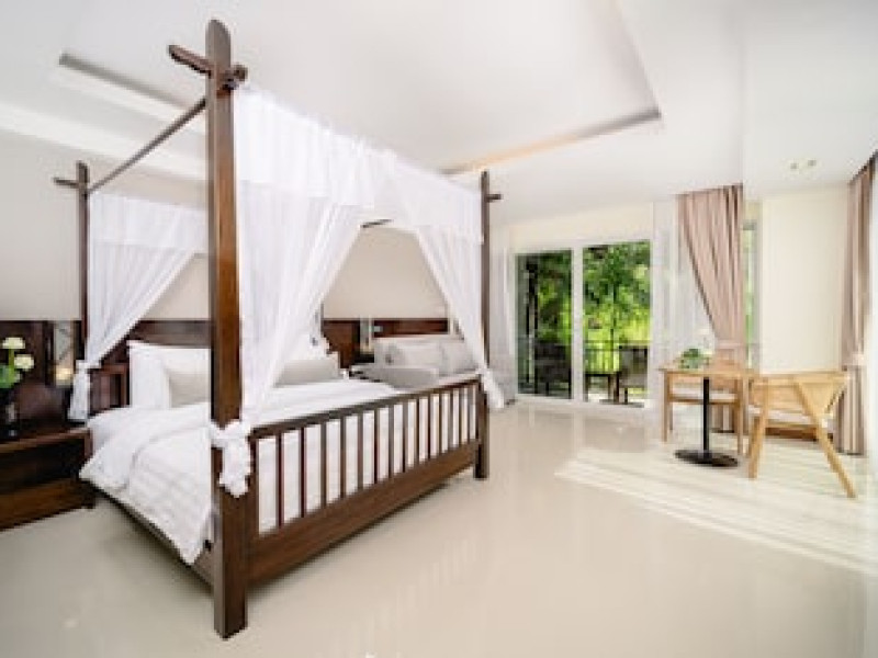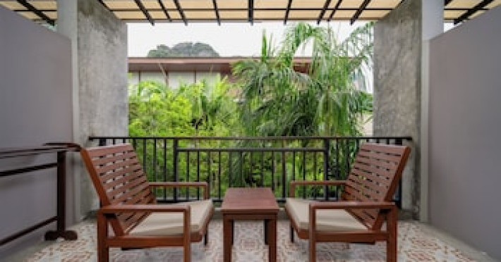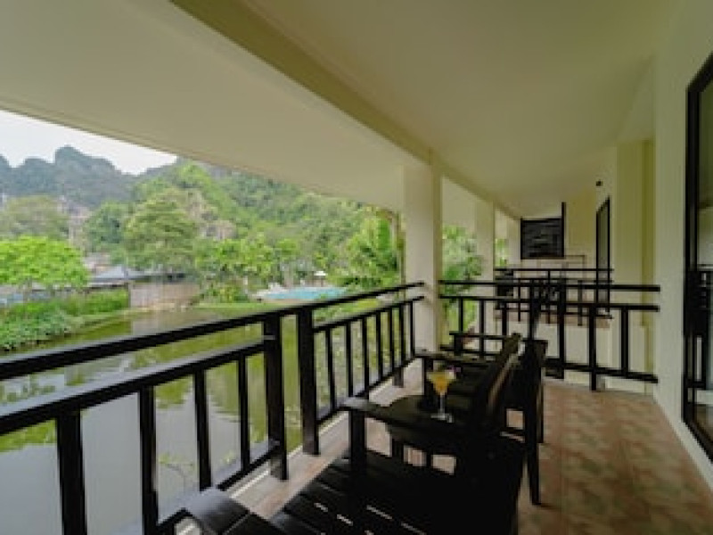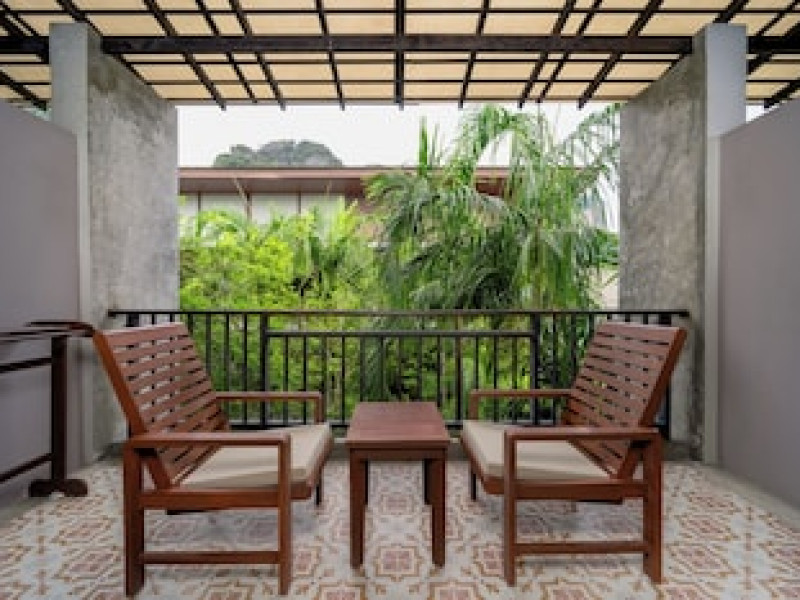 Camerele de la Railay Princess Resort & Spa au mobilier în stil thailandez, TV prin satelit, zonă de relaxare și balcon privat cu vedere la grădină și piscină.