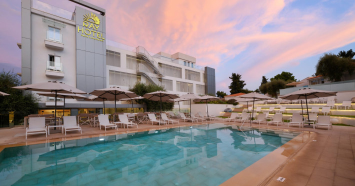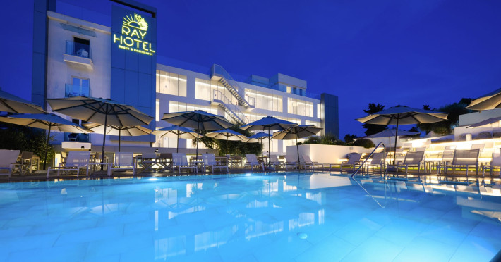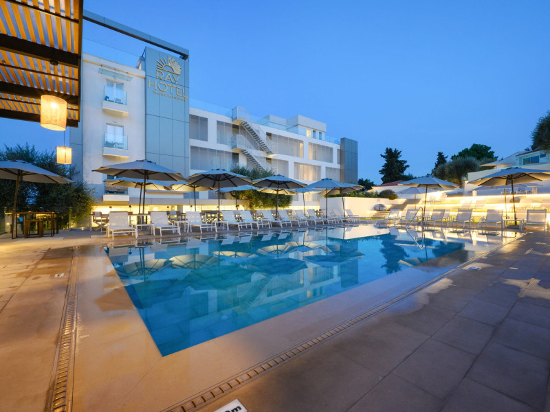 Ray Hotel Corfu se află în Corfu, la 7 minute de mers pe jos de Plaja Vounos, și oferă cazare de 4 stele și un bar. Această proprietate include un serviciu de concierge, precum și o terasă pentru plajă. La proprietate există o piscină în aer liber, iar oaspeții au la dispoziție WiFi gratuit și parcare privată gratuită.