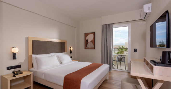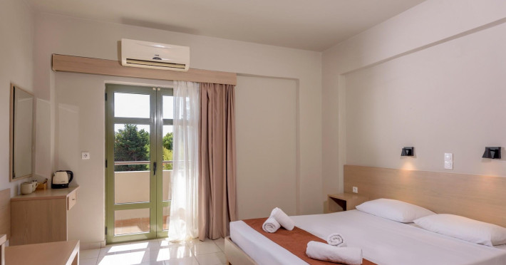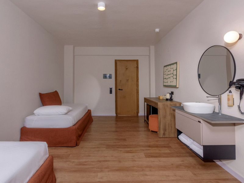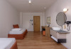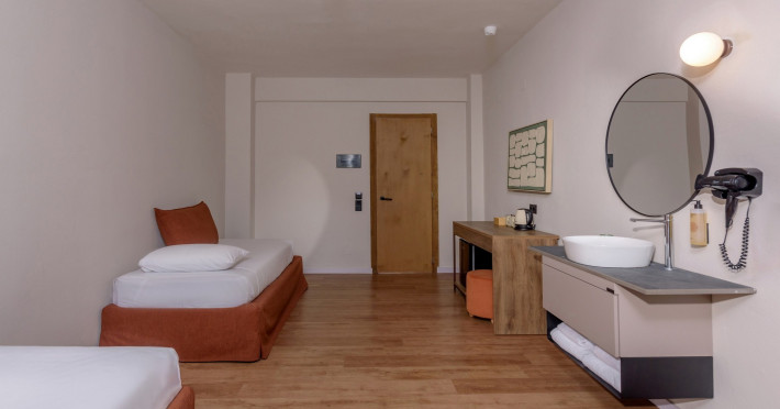 Camera dubla: baie/WC (uscator de par), aer conditionat cu control individual, TV/sat., telefon, seif (gratuit), mini-frigider (1 sticla de apa la sosire), facilitati pentru prepararea de ceai si cafea, balcon sau terasa, suprafata camerei 19 - 24 m2. Camere nerenovate.
