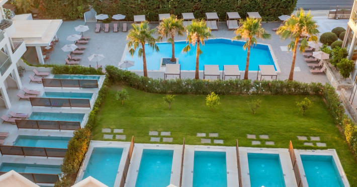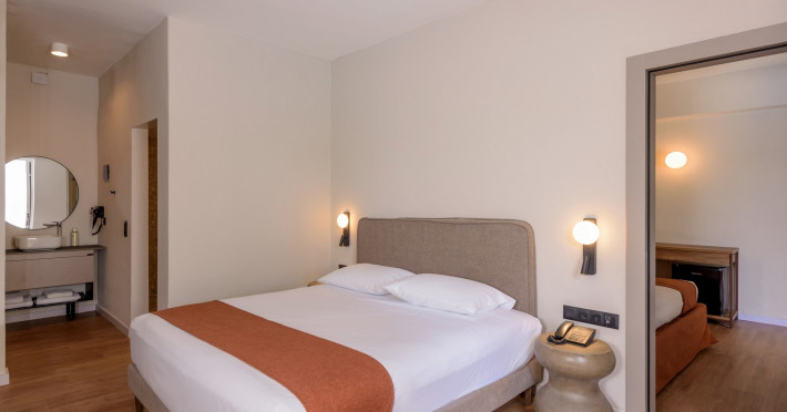 Camera de familie, superioara, 2 dormitoare, piscina privata: 2 dormitoare si o zona de living separate printr-o usa, piscina privata, papuci si halate de baie, o sticla suplimentara de vin la sosire, o sticla de apa reaprovizionata zilnic, suprafata camerei 45 - 55 m2, camere dupa reconstructie.