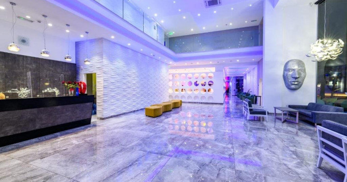 Descriere: River Rock Hotel 4* este un hotel elegant, contemporan, nou In Ayia Napa, ceea ce il face o locatie ideala atat pentru cupluri, cat si pentru familii. Stilul bine proiectat, elegant si contemporan, ofera sejurul perfect pentru cei care doresc sa se bucure de cartierul plin de viata sau de o pauza mai linistita in familie, cu toate activitatile distractive din jur. Locatie : Hotelul se bucura de o locatie unica. Situat central, pe bulevardul Kryou Nerou, hotelul este la 7 minute de mers pe jos de cea mai mare plaja din Ayia Napa si la 4 minute de manastirea medievala din centrul orasului Ayia Napa. Dotari camera: Camere elegante, moderne, functionale. Hotelul River Rock ofera camere moderne, bine proiectate. Proiectate, decorate si mobilate cu gust, sunt disponibile camere cu paturi twin si paturi duble, cu balcon cu vedere spre piscina sau spre interior, oferind confort. Wi-Fi gratuit este oferit in camerele si zonele publice ale hotelului. Toate camerele au baie proprie cu dus, TV LCD prin satelit, telefon, cutie de valori, mini-frigider, cafetiera, uscator de par, incalzire centrala, aer conditionat si balcon privat. Facilitati hotel : La Hotelul River Rock veti gasi o receptie deschisa nonstop, o gradina si un bar. Alte facilitati oferite la proprietate includ depozit de bagaje. Proprietatea ofera parcare gratuita.