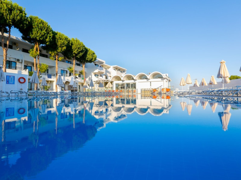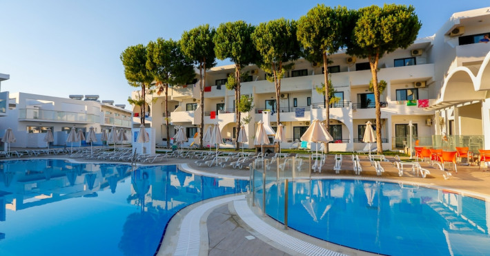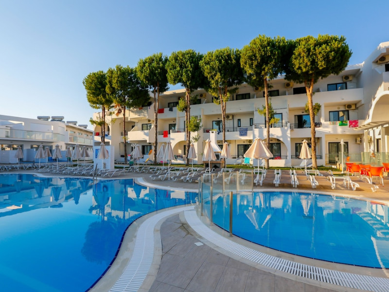 Rodos Star is located a few hundred meters outside the village Afantou, 20 minute´s walk from the beach and 1 kilometer from the nearest golf course. Facilities include reception, bar, restaurant, minimarket, Internet corner (extra charge), safe (extra charge), minimarket, recreation program, children´s pool and pool.Rooms with bathroom/shower, hairdryer, telephone, air condition (extra charge) and balcony/terrace.Address: Afantou,85103 Afantou, Rhodes, Greece