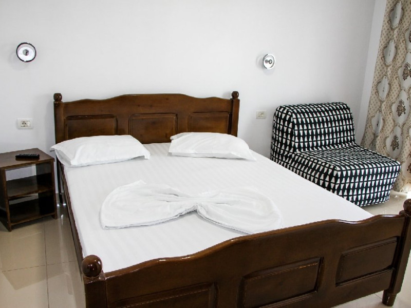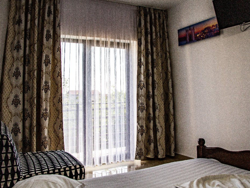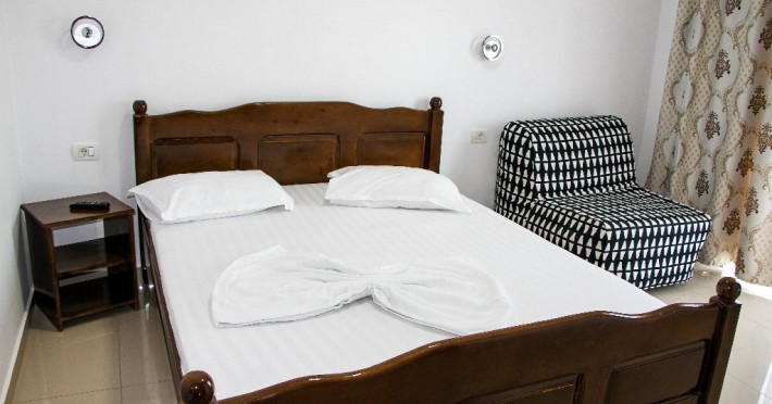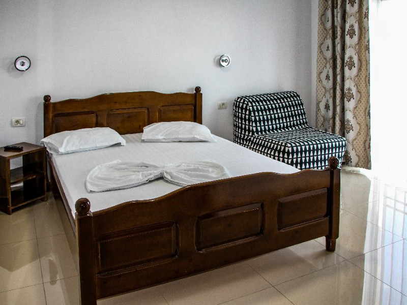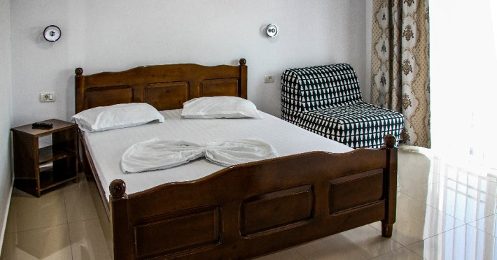 DESCRIERE CAMERE Dotari camere: TV ecran plat, frigider, dulap. Aer conditionat in Camerele Duble si Camerele Family. Balcon la Camerele Duble si Camerele Economy. Camerele Duble dispun si pat matrimonial de 160/200 cm. Camerele duble Economy pat matrimonial de 160/200 cm. Camerele Family dispun de doua paturi matrimoniale de 140/200 cm, sunt situate la mansarda si nu au balcon.