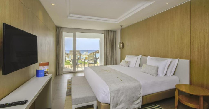 Sport, divertisment si afaceri: Sezlonguri, umbrele, saltele in jurul piscinelor, zone de relaxare. Plaja privata: sezlonguri, saltele, mese joase, casute de paie si prosop de plaja. Piscina Lagoon incalzita: Acces gratuit pentru rezidenti: o mare piscina exterioara in forma de laguna (incalzita in sezonul de iarna). Piscina Bali: Acces gratuit pentru rezidenti: Piscina exterioara cu apa dulce. Piscina Infinity: Acces gratuit pentru rezidenti: Piscina infinita cu vedere spectaculoasa la Mediterana. Piscina interioara incalzita in sezonul de iarna: Acces gratuit pentru rezidenti: Piscina interioara incalzita cu apa dulce de la 9:00 la 18:00. Piscina BioAzur cu apa de mare: Suplimentar: Piscina cu apa de mare de culoare azurie, incalzita, cu un parcurs acvatic, jeturi si jacuzzi. Centrul BioAzur Thalasso: Suplimentar. Un adevarat refugiu de liniste cu vedere la mare, Bio Azur Thalasso & Spa este unul dintre cele mai luxoase din regiunea Cap Bon.