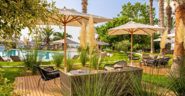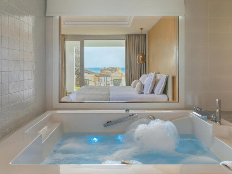 Hotelul dispune si de 12 bungalouri, dupa cum urmeaza: Bungalouri pe prima linie de plaja de 45mp (cu pat king size, zona de relaxare, baie), Bungalouri pe prima linie de plaja cu suite de 75mp cu pat king size si o camera de zi separata si baie cu dus si cada + toaleta cu dus si chiuveta, Bungalow pe prima linie de plaja cu suita cu jacuzzi de 85mp cu 1 dormitor cu pat king size, camera de zi separata si o baie cu jacuzzi si dus, plus toaleta cu dus si chiuveta.