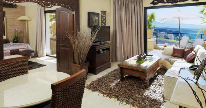 Each of the 28 exquisite villas with heated private pools looks out over the greenery of Costa Adeje Golf Course, the drama of the southern mountains and the glistening of the Atlantic Ocean.