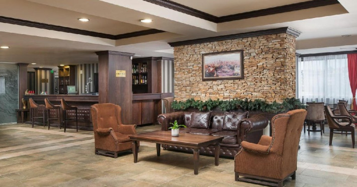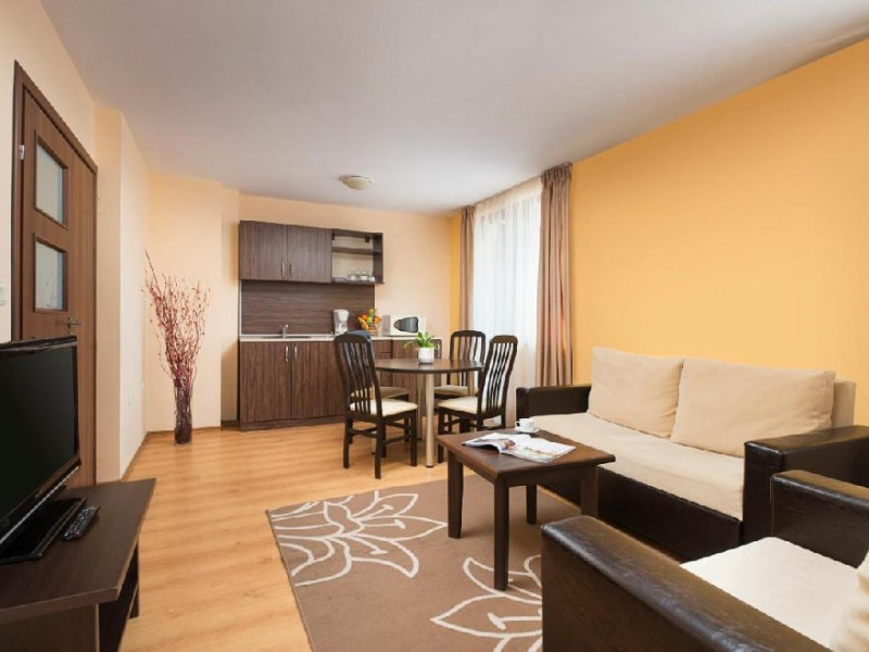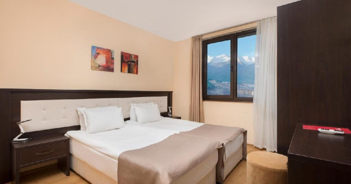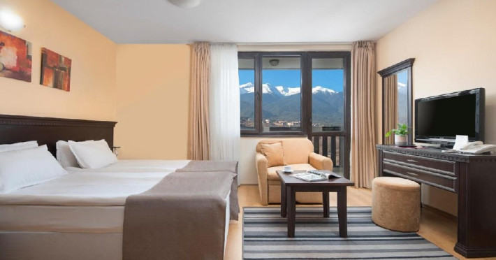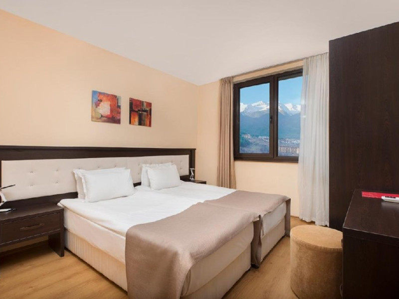Localizare: Royal Park Apartments ofera vedere panoramica la Muntii Pirin. Complexul e situat la 1.2 km de telegondola Bansko si partiile de ski. Facilitati hotel: Complexul pune la dispozitia turistilor receptie deschisa 24 de ore, restaurant, bar, parcare, spa, camera depozitat echipamente de ski, piscina, sala de gimnastica. Dotari camera: Camerele sunt dotate cu Wifi, TV, mini bar (contra cost), seif (contra cost), articole de toaleta si uscator de par. Apartamentele sunt dotate cu chicineta mica cu cuptor cu microunde, prajitor de paine, frigider, aer conditionat, canapea si un dormitor separat, zona de relaxare, TV, fotoliu, telefon, seif si Wifi. Site web: https://www.royalpark-bg.com/