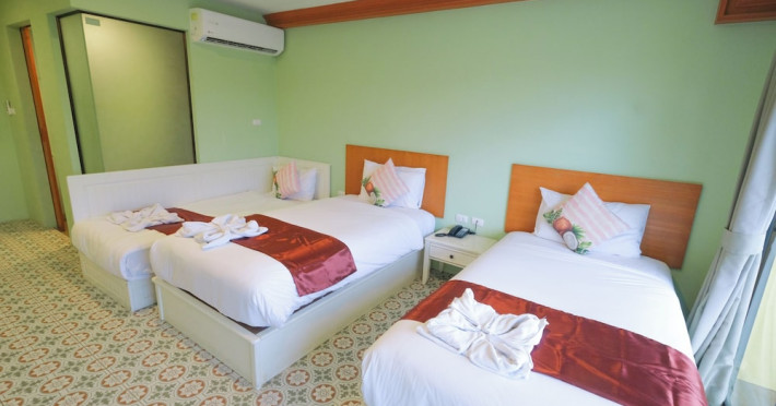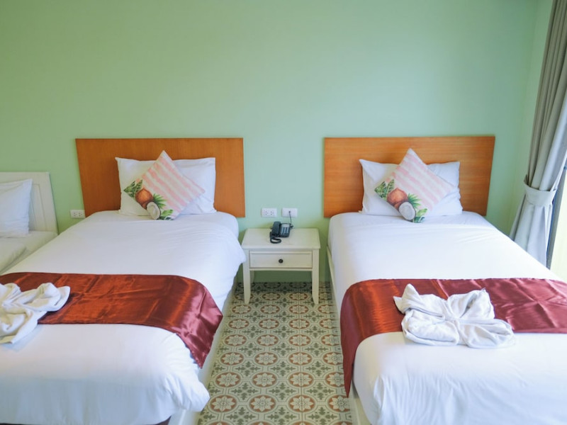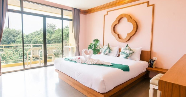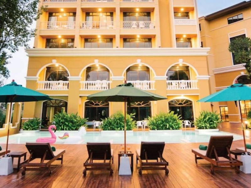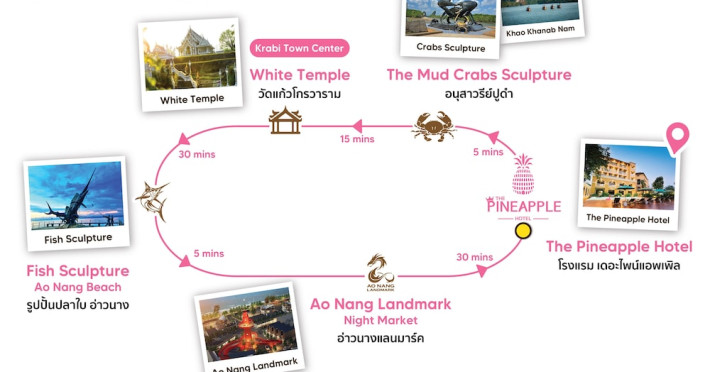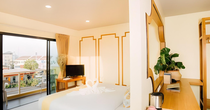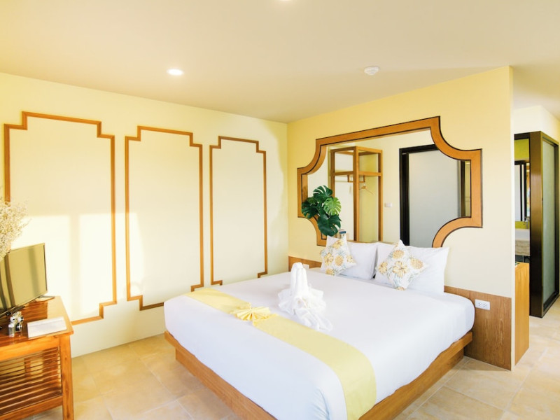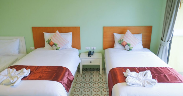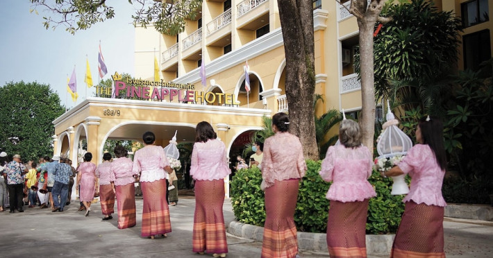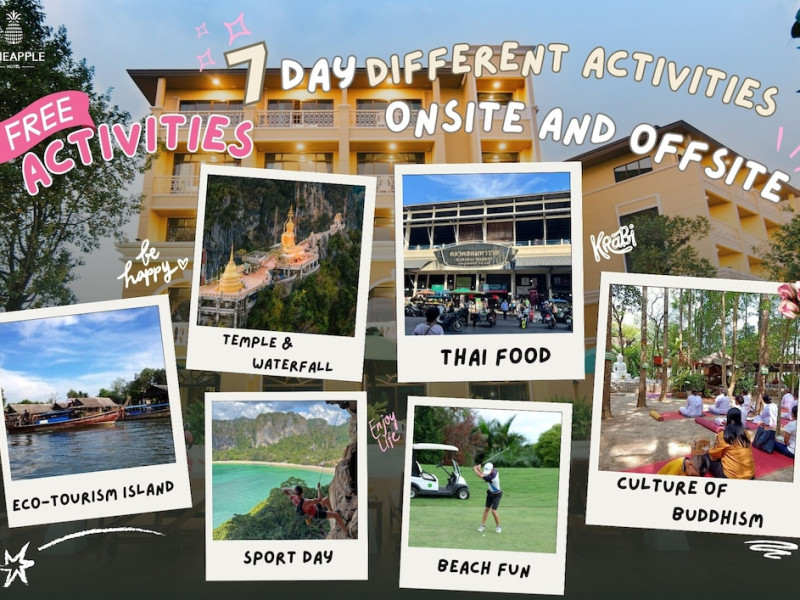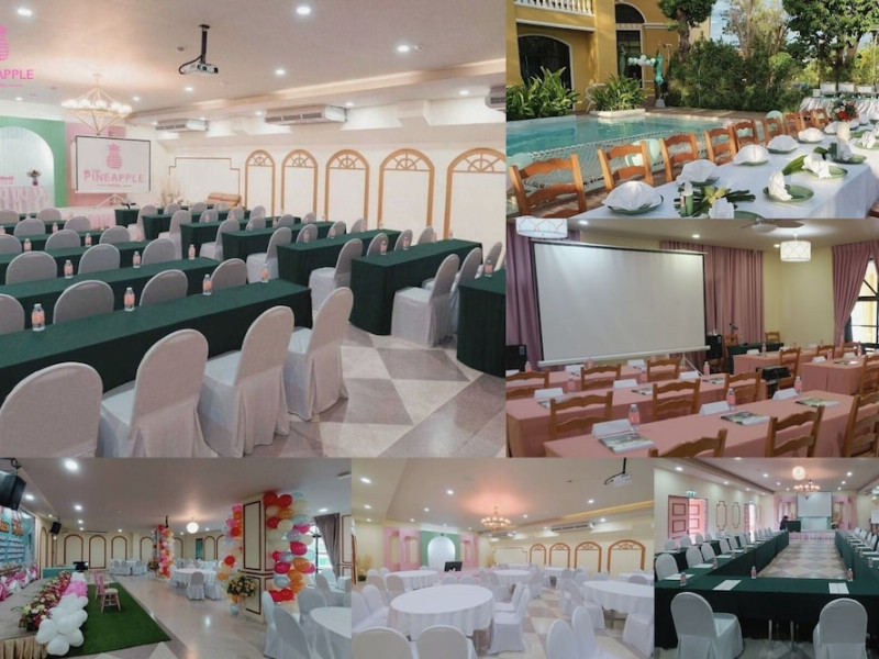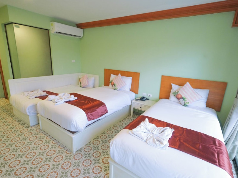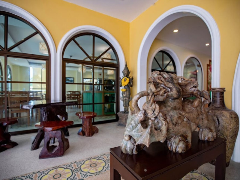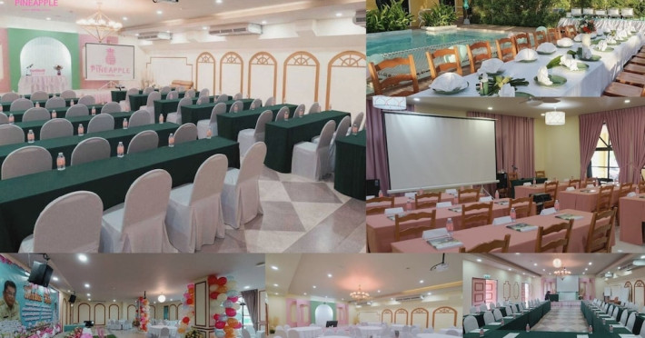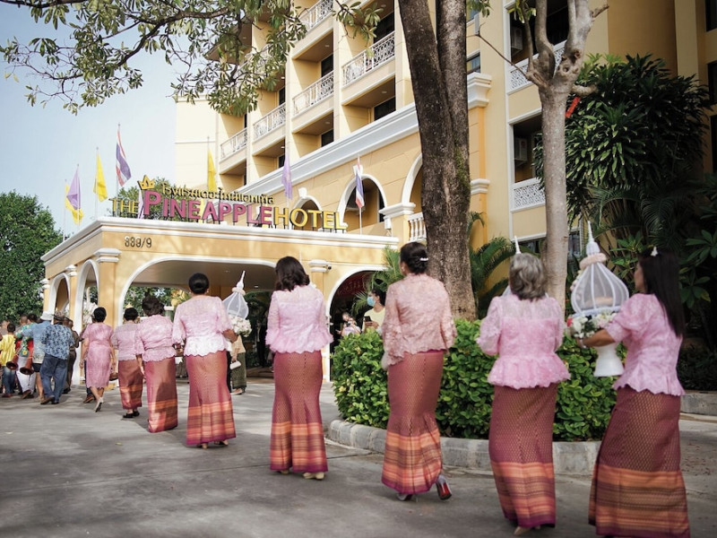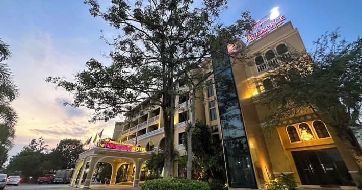 Located in Krabi, ROYAL PINEAPPLE HOTEL a welcome to wealth and good fortune offers accommodation with an outdoor pool, fitness center, garden, restaurant, and terrace. It features 72 air-conditioned rooms with refrigerators, LCD televisions, and private balconies. Complimentary wireless internet access is available. Bathrooms include complimentary toiletries and hair dryers. The hotel provides a 24-hour front desk, tour desk, shared lounge, and free private parking. Guests can enjoy on-site dining at one of the hotel's 2 restaurants, including THE CHABA RESTAURANT. Buffet breakfasts and local cuisine breakfasts are available daily from 6:30 AM to 10:00 AM for a fee. Additional amenities include a business center, express check-in/check-out, luggage storage, wedding services, and a television in a common area. Airport transfers, taxi, car hire, and shuttle services are available. Event facilities consist of a conference center and 4 meeting rooms. Other services include dry cleaning/laundry, and daily housekeeping. The ROYAL PINEAPPLE HOTEL a welcome to wealth and good fortune is a hotel.