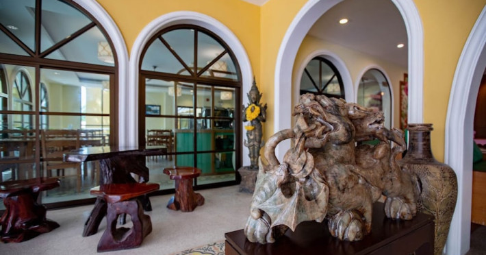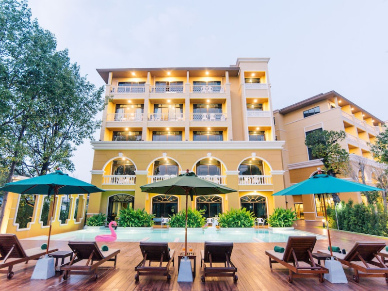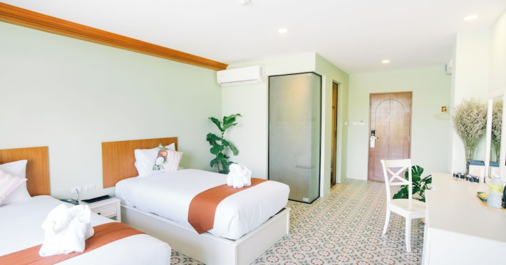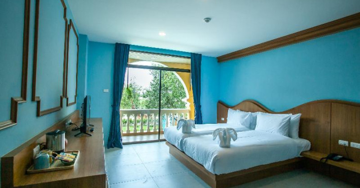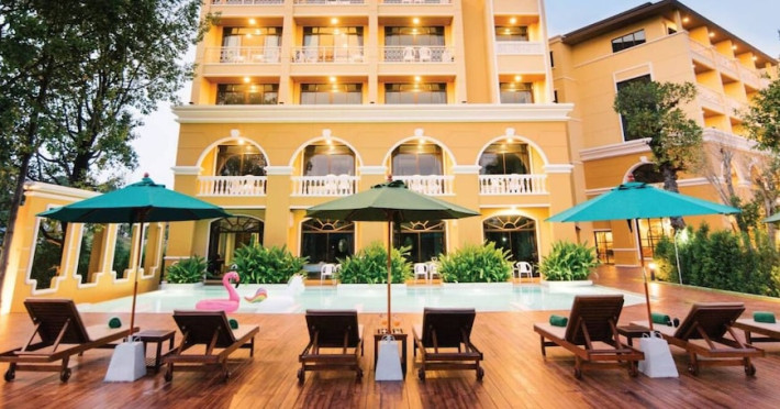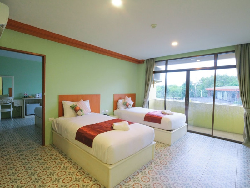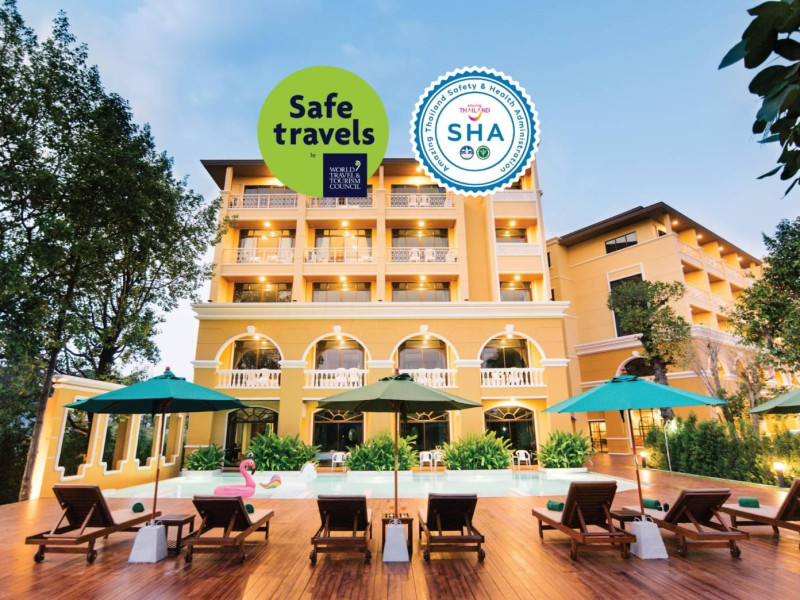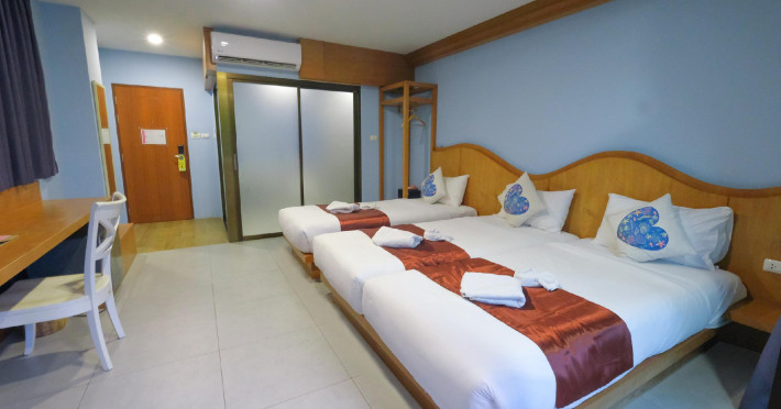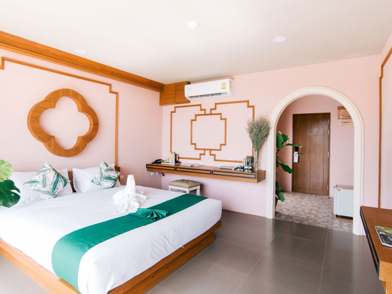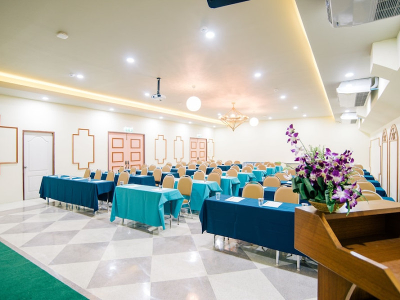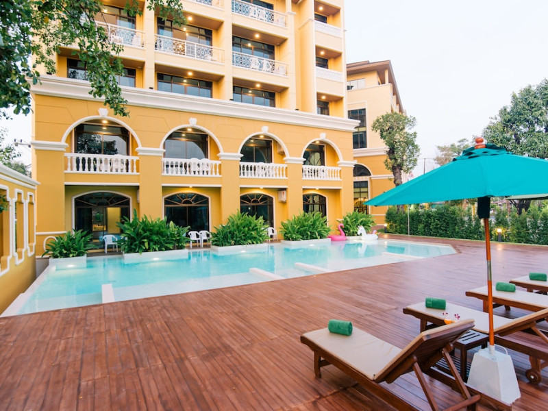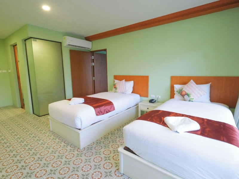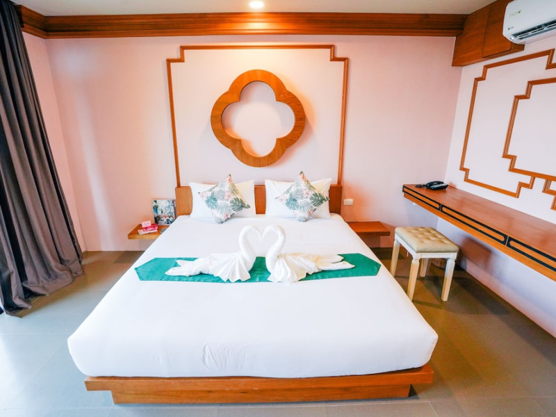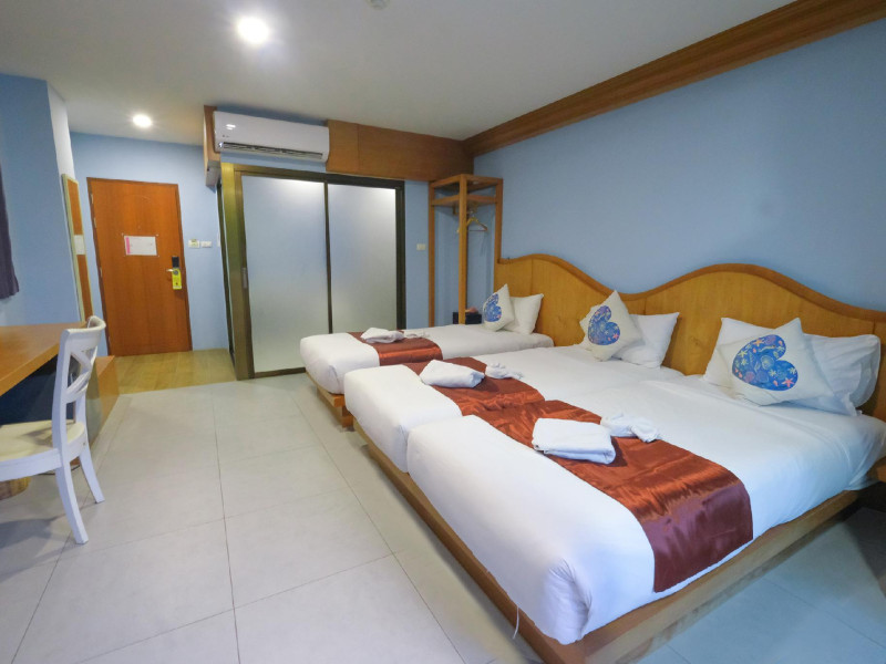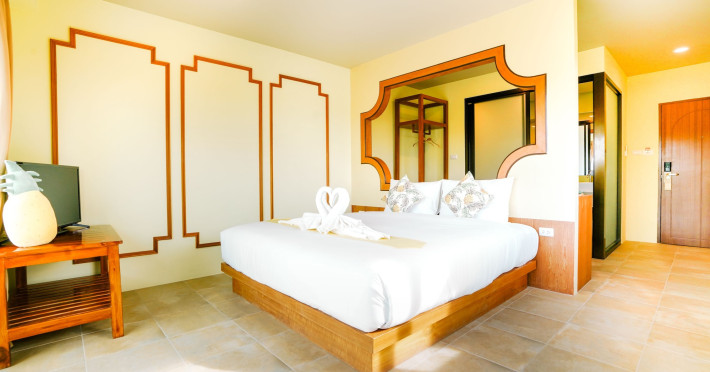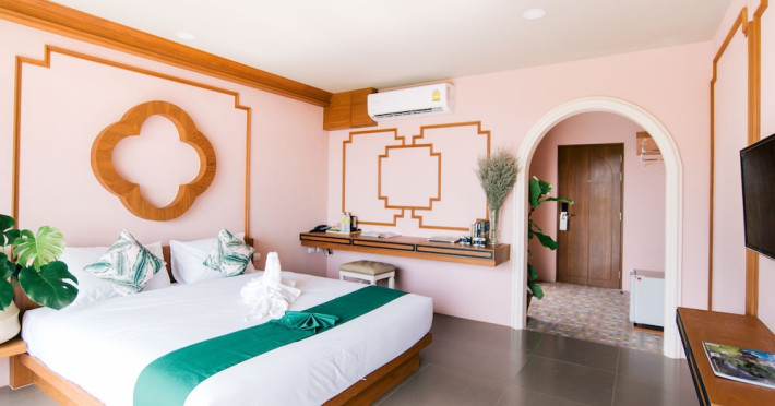 Located in Krabi, ROYAL PINEAPPLE HOTEL a welcome to wealth and good fortune offers accommodation with an outdoor pool, fitness center, garden, restaurant, and terrace. It features 72 air-conditioned rooms with refrigerators, LCD televisions, and private balconies. Complimentary wireless internet access is available. Bathrooms include complimentary toiletries and hair dryers. The hotel provides a 24-hour front desk, tour desk, shared lounge, and free private parking. Guests can enjoy on-site dining at one of the hotel's 2 restaurants, including THE CHABA RESTAURANT. Buffet breakfasts and local cuisine breakfasts are available daily from 6:30 AM to 10:00 AM for a fee. Additional amenities include a business center, express check-in/check-out, luggage storage, wedding services, and a television in a common area. Airport transfers, taxi, car hire, and shuttle services are available. Event facilities consist of a conference center and 4 meeting rooms. Other services include dry cleaning/laundry, and daily housekeeping. The ROYAL PINEAPPLE HOTEL a welcome to wealth and good fortune is a hotel.