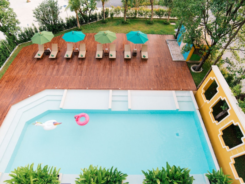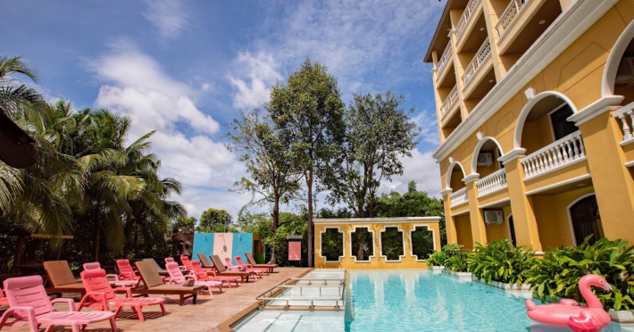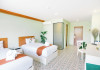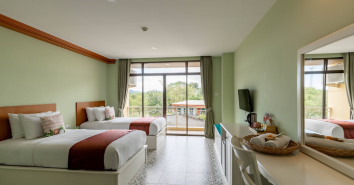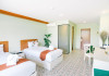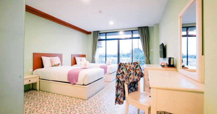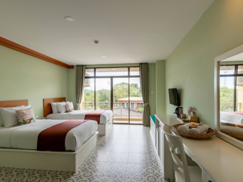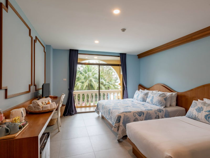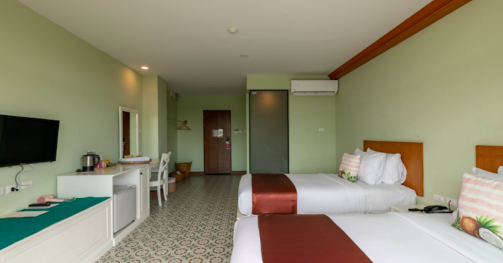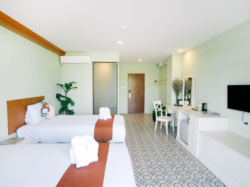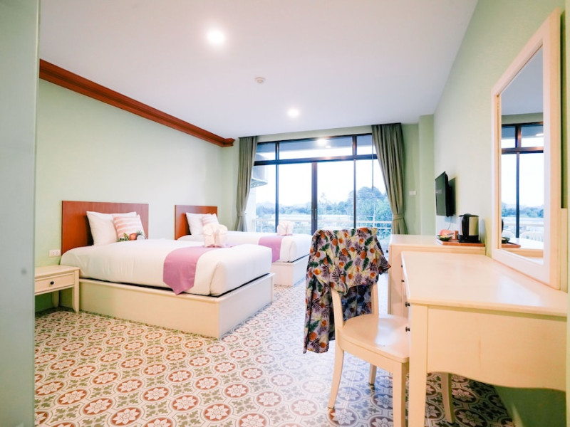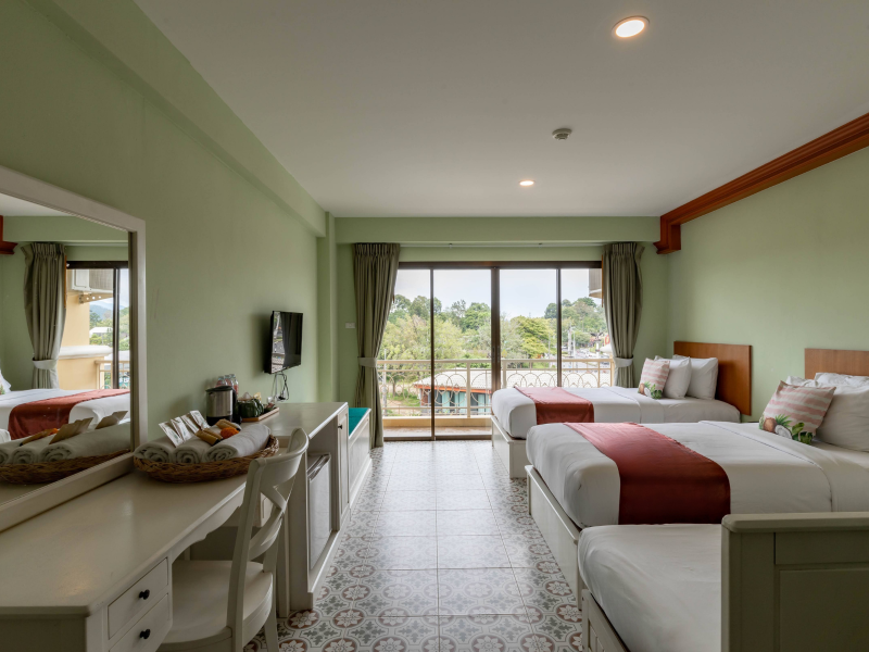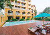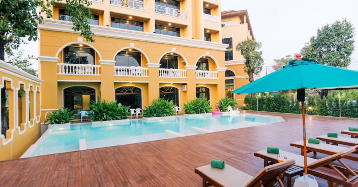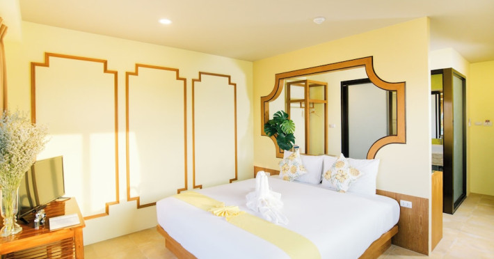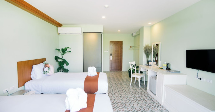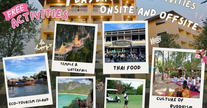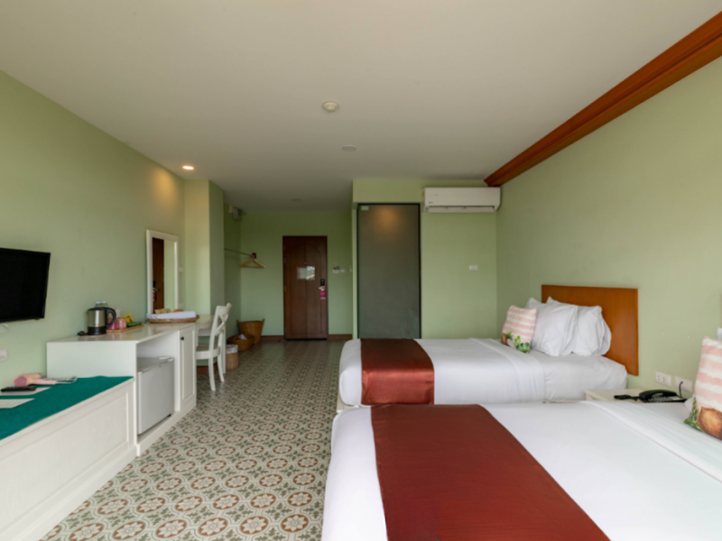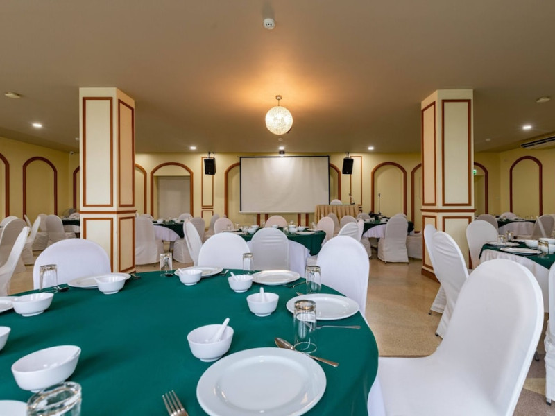 Located in Krabi, ROYAL PINEAPPLE HOTEL a welcome to wealth and good fortune offers accommodation with an outdoor pool, fitness center, garden, restaurant, and terrace. It features 72 air-conditioned rooms with refrigerators, LCD televisions, and private balconies. Complimentary wireless internet access is available. Bathrooms include complimentary toiletries and hair dryers. The hotel provides a 24-hour front desk, tour desk, shared lounge, and free private parking. Guests can enjoy on-site dining at one of the hotel's 2 restaurants, including THE CHABA RESTAURANT. Buffet breakfasts and local cuisine breakfasts are available daily from 6:30 AM to 10:00 AM for a fee. Additional amenities include a business center, express check-in/check-out, luggage storage, wedding services, and a television in a common area. Airport transfers, taxi, car hire, and shuttle services are available. Event facilities consist of a conference center and 4 meeting rooms. Other services include dry cleaning/laundry, and daily housekeeping. The ROYAL PINEAPPLE HOTEL a welcome to wealth and good fortune is a hotel.