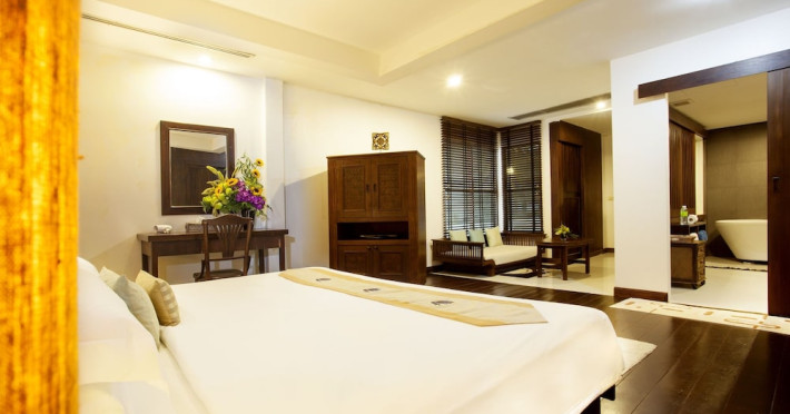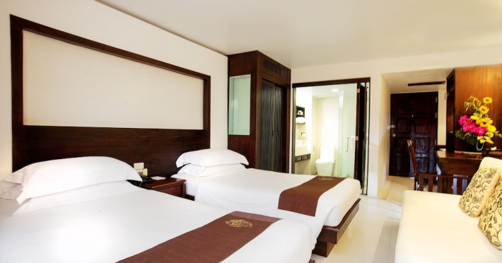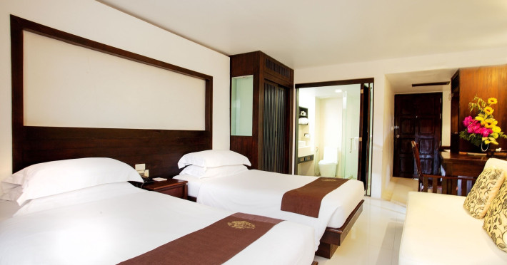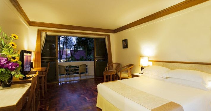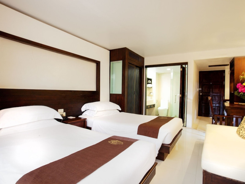 Safari Beach Hotel, SHA Plus Certified, offers a prime beachfront location in Patong, just steps from Bangla Road and Patong Beach. It is conveniently situated near excellent shopping areas and vibrant nightspots, including Bangla Road (0.1 km) and Jungceylon Shopping Center (0.5 km). Phuket International Airport (HKT) is approximately 32 km (19.9 mi) away, typically a 45-minute drive.