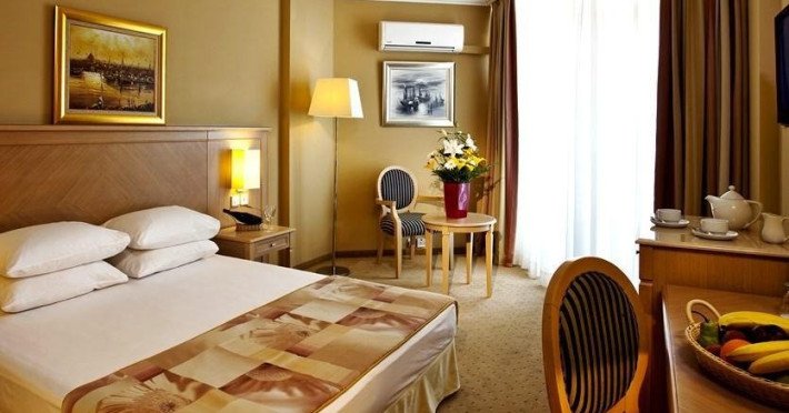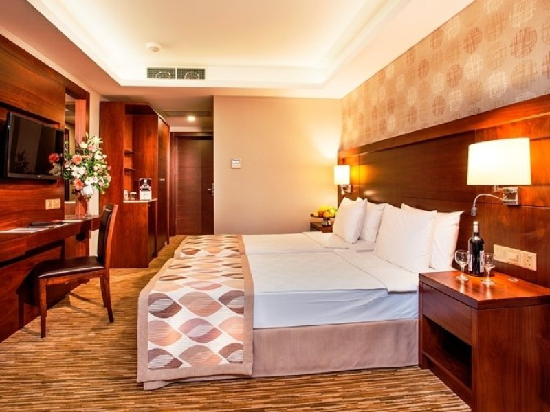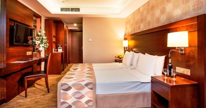 Dotari camere: Hotelul are camerele dotate cu: telefon, TV satelit, minibar, aer conditionat, seif, uscator de par, mocheta (cladirea principala), pachet (vile), balcon.