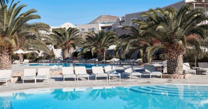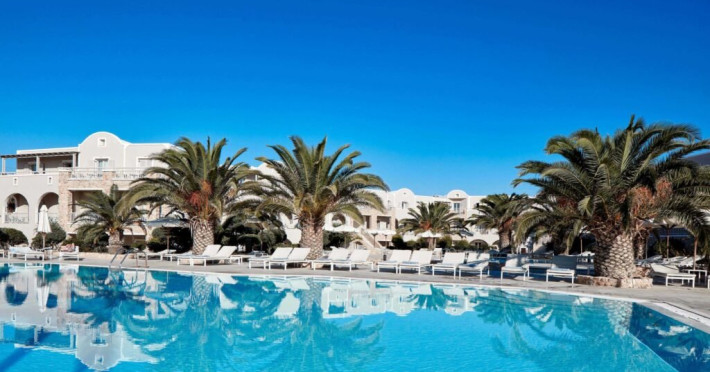 Localizare HOTEL SANTO MIRAMARE: Hotelul este situat in partea de sud a insulei Santorini, pe faimoasa plaja Perivolos.