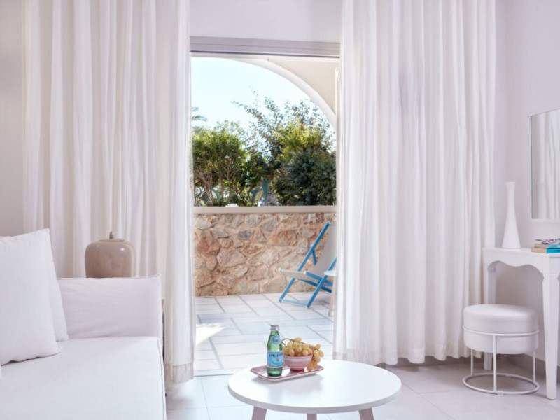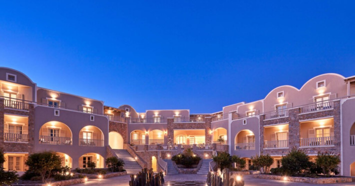 Descriere HOTEL SANTO MIRAMARE: Hotelul este construit in stil traditional cicladic si este potrivit atat pentru vacanta cuplurilor de toate varstele, cat si pentru vacanta familiilor cu copii.