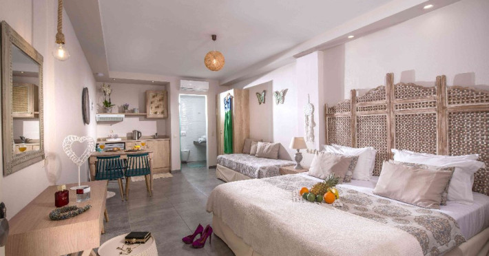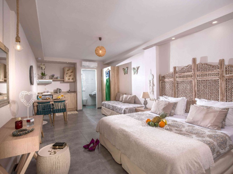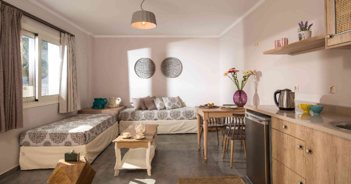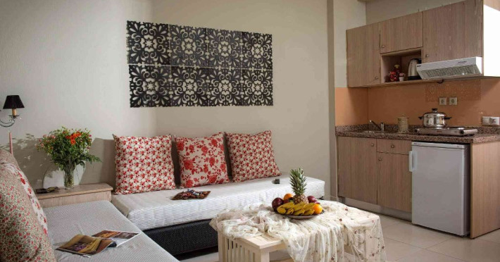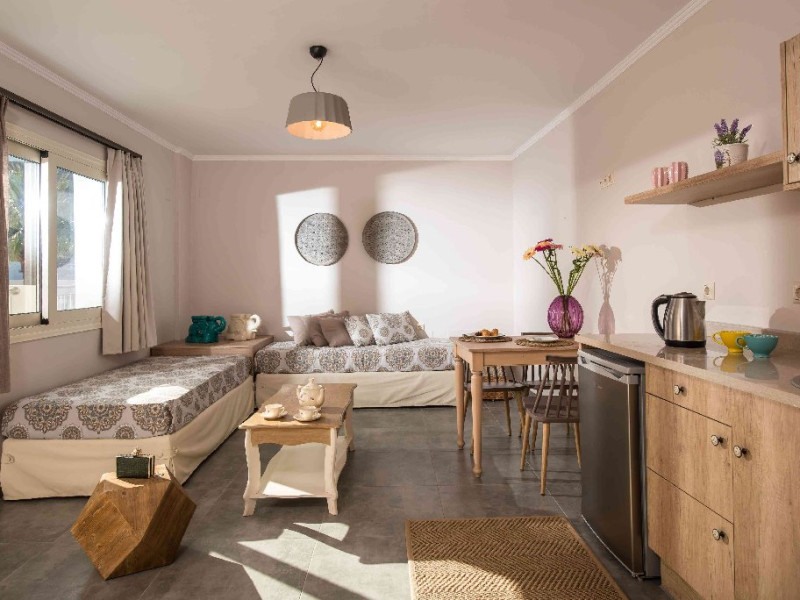 Dotari camere: toate camerele (standard/ superi one bedroom apartment cu vedere la piscina; standard/ superior triple studio cu vedere la piscina; junior suite; standard twin studio; superior twin/dubla cu vedere la piscina) au aer conditionat, chicineta, zona de luat masa,balcon.