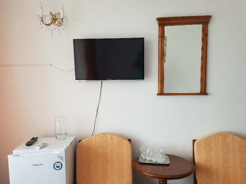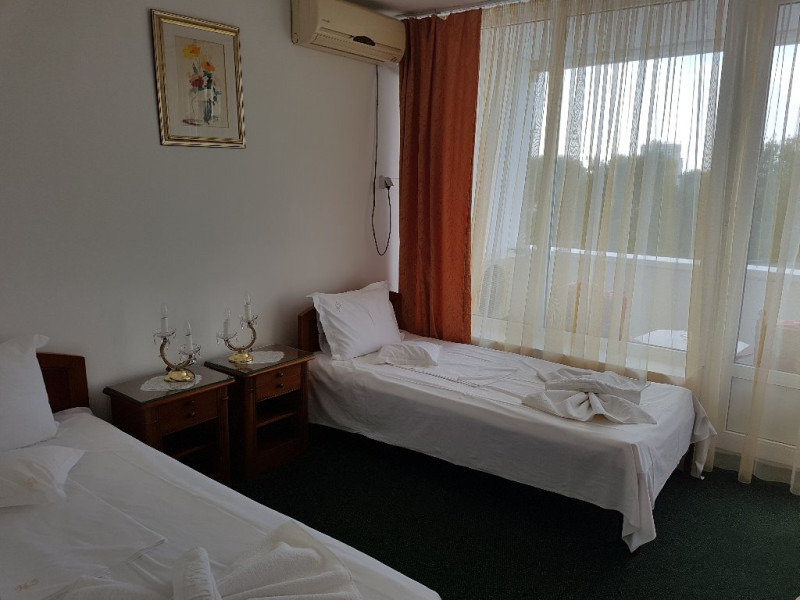 Hotelul dispune de 122 de camere, twin dar si matrimoniale, dispuse pe 7 nivele, cu o minunat vedere la mare. Camerele recent renovate, au grup sanitar propriu si sunt dotate cu aer conditionat, frigider si televiziune prin cablu. Internet wireless este disponibil in interior, in receptie si in bar, dar si la exterior si pe terasa hotelului. Masina dumneavoastr va fi permanent asigurat in parcarea hotelului. Hotelul Scoica mai este dotat in incinta si cu o sal de conferinte cu o capacitate de 60 locuri, prevzut cu aparatur de ultim actualitate, dedicat intalnirilor de afaceri si banchetelor. Pentru a v petrece cat mai plcut timpul liber aveti la dispozitie: piscin in aer liber, teras si barbeque, terenuri de tenis si volei.