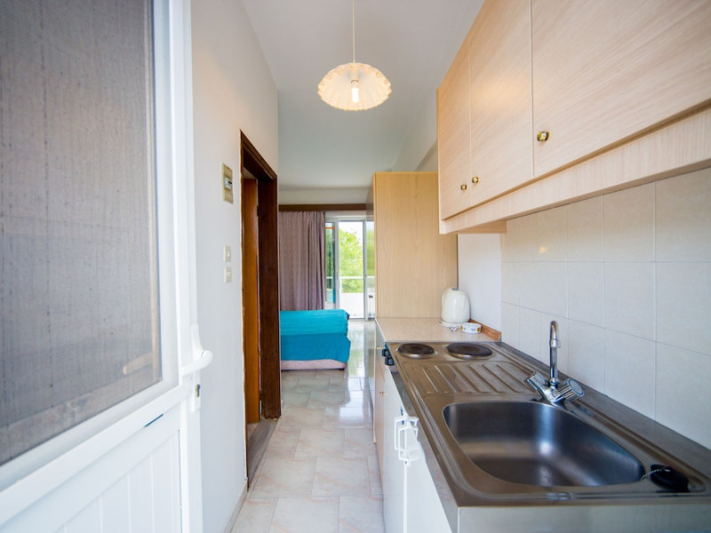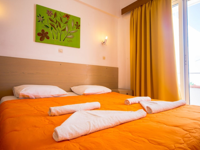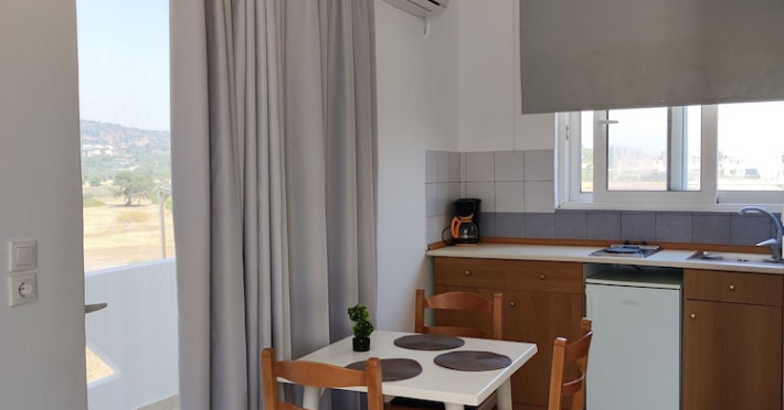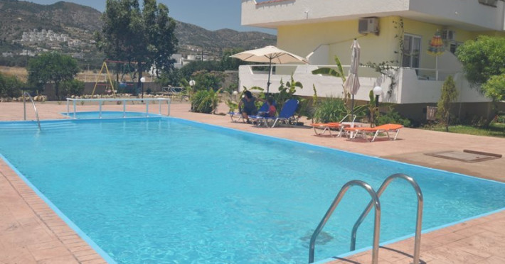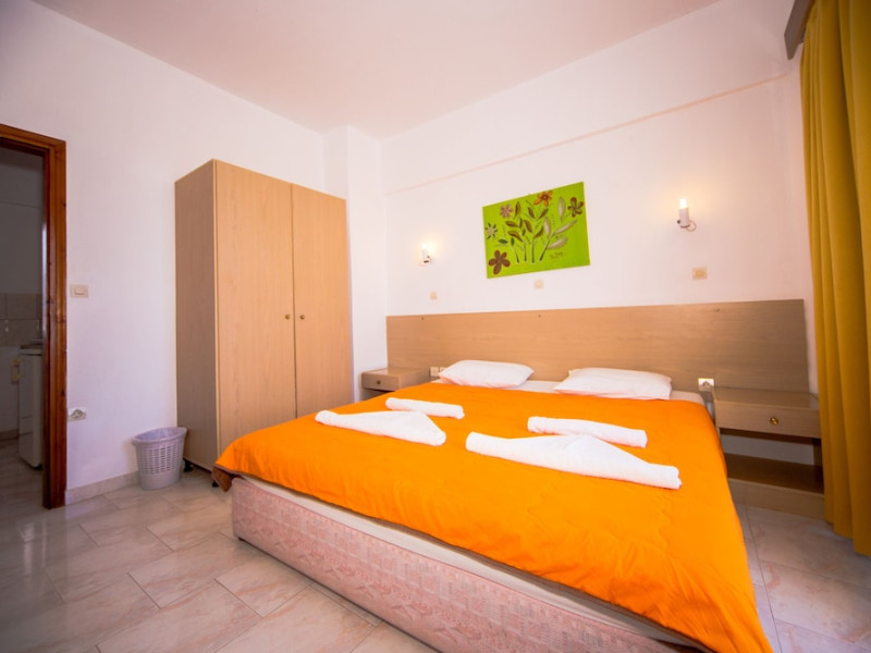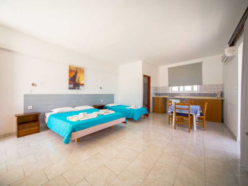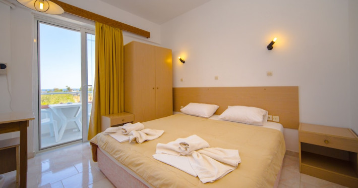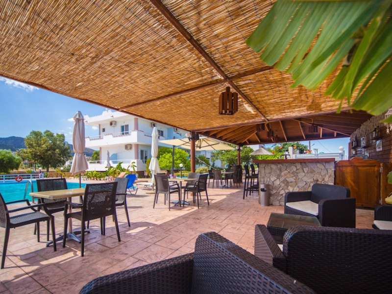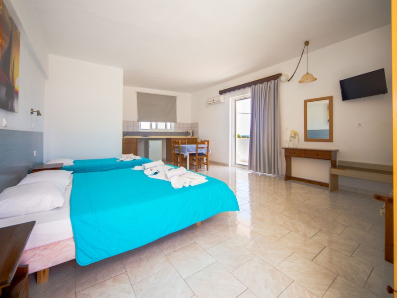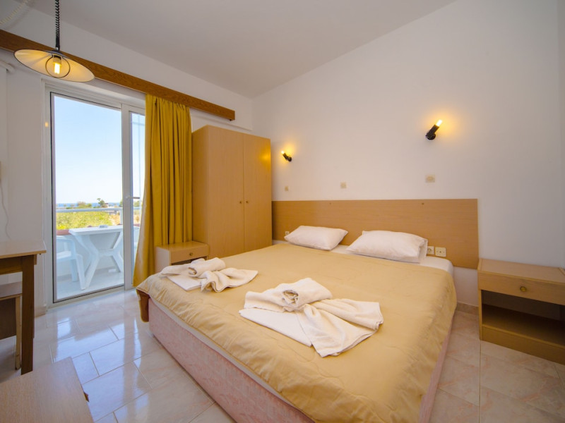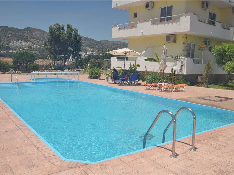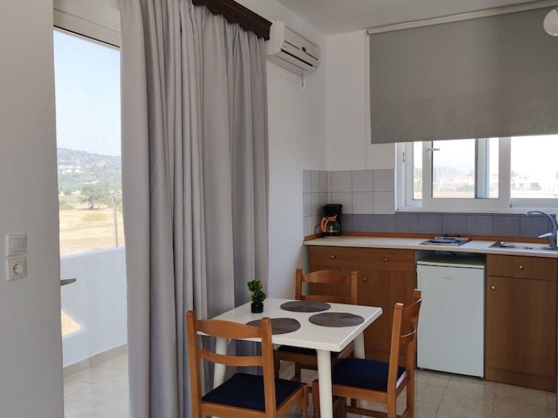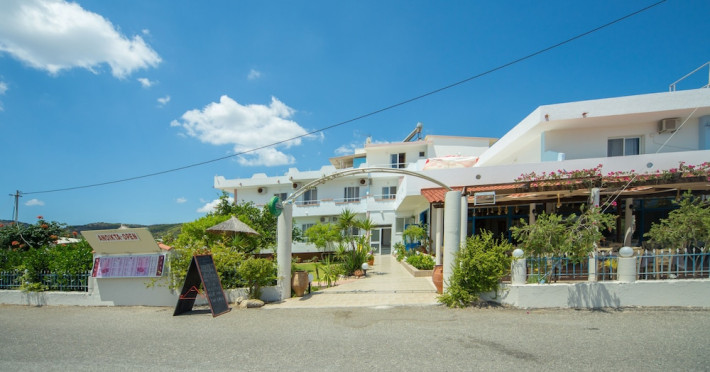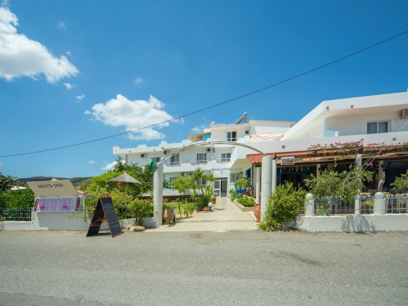 The property was in 2000 completed and covers 10 housing units on 2 floors. The complex offers reception (08:00-20:00 h) with pay phone, terrace on the upper floor, restaurant bar run by the owners (open morning - evening), garden, sun beds (extra charge) and showers at the beach, beach bar, water sport (high season, extra charge)All studios have following amenities: air conditioning (extra charge), kitchenette with water boiler and coffee machine, refrigerator, shower, WC, hairdryer and balcony or terrace.**Important: Please advise arrival time, if the arrival is outside the reception hours! **Address: 85100 Kalathos, Lindos, Rhodes, Greece.