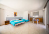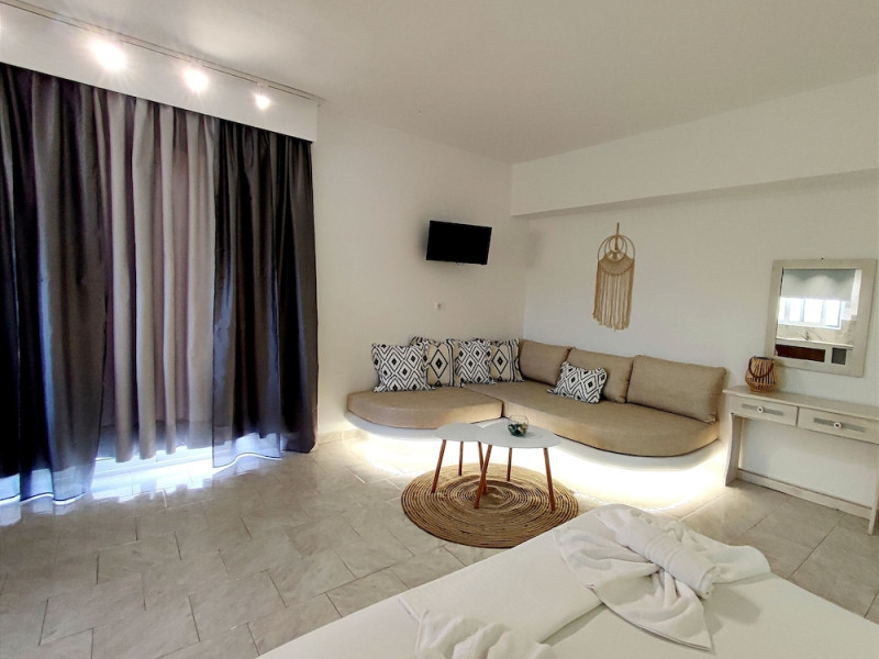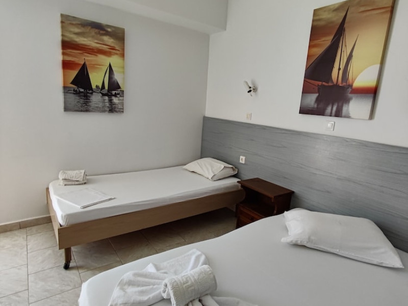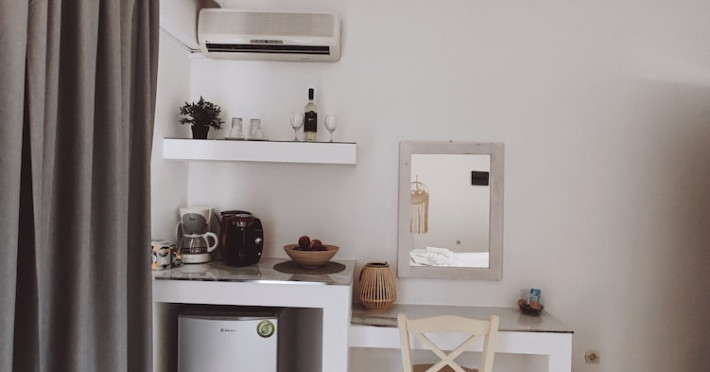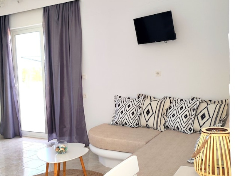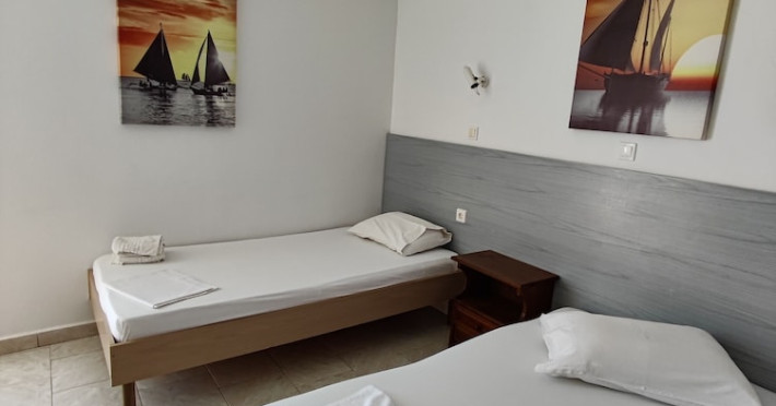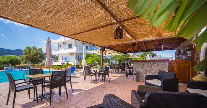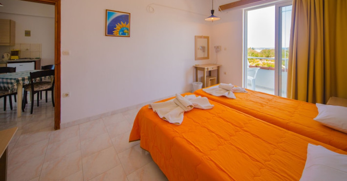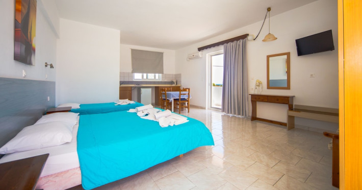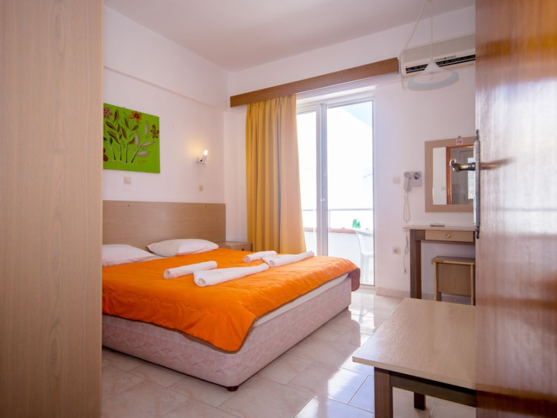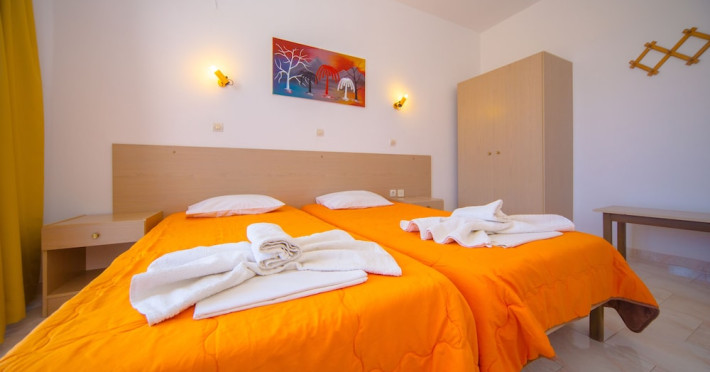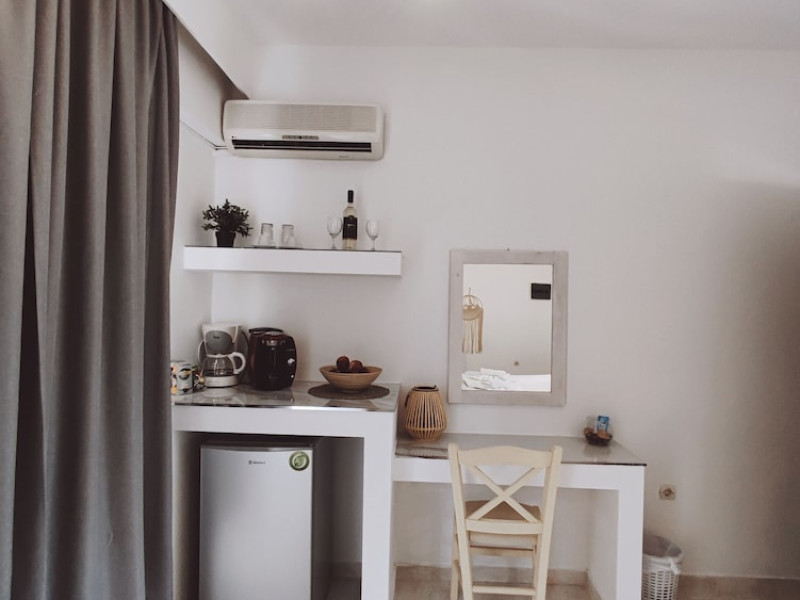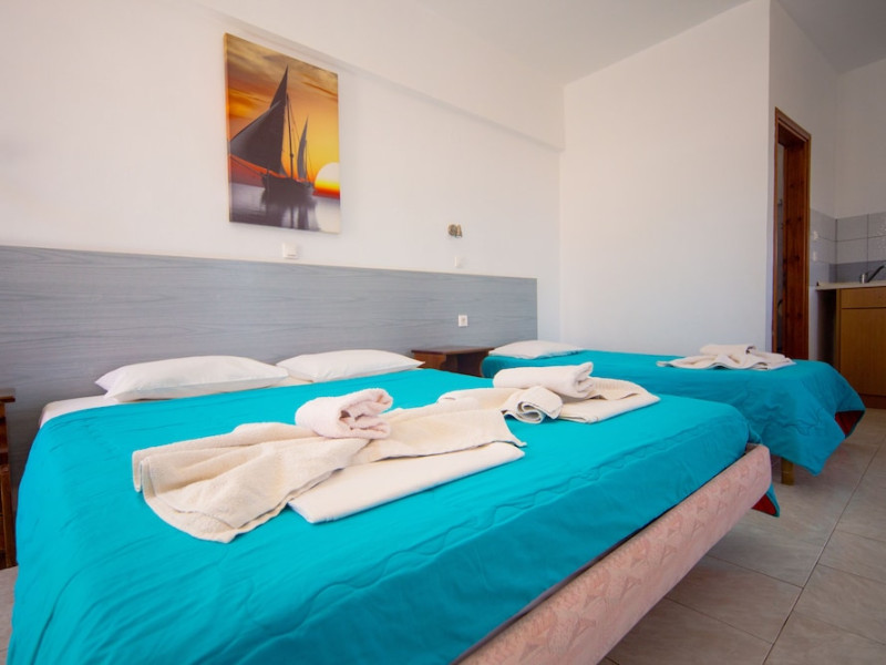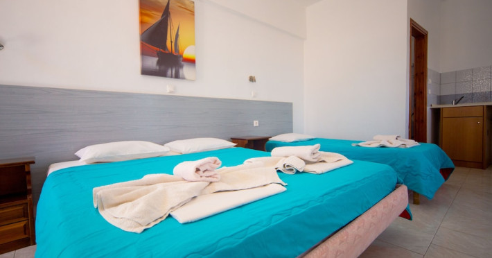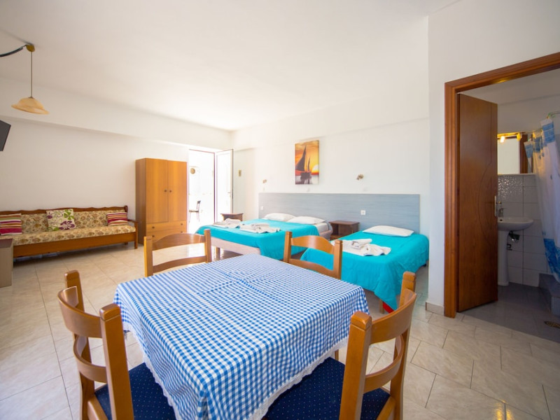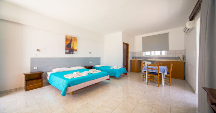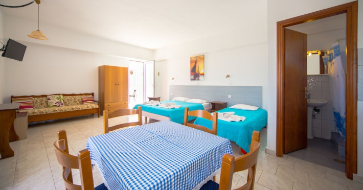 The property was in 2000 completed and covers 10 housing units on 2 floors. The complex offers reception (08:00-20:00 h) with pay phone, terrace on the upper floor, restaurant bar run by the owners (open morning - evening), garden, sun beds (extra charge) and showers at the beach, beach bar, water sport (high season, extra charge)All studios have following amenities: air conditioning (extra charge), kitchenette with water boiler and coffee machine, refrigerator, shower, WC, hairdryer and balcony or terrace.**Important: Please advise arrival time, if the arrival is outside the reception hours! **Address: 85100 Kalathos, Lindos, Rhodes, Greece.
