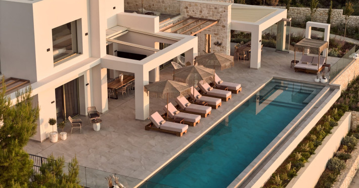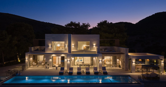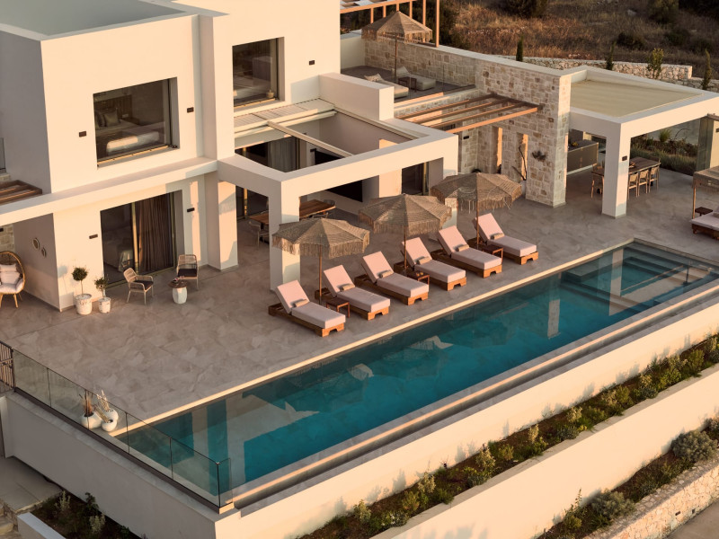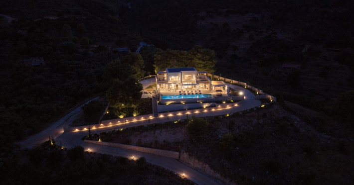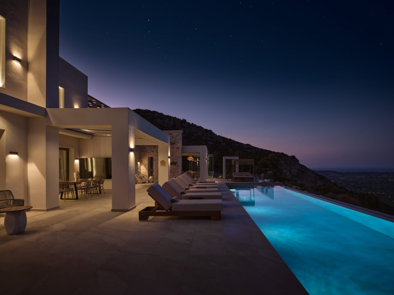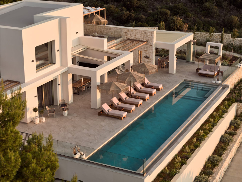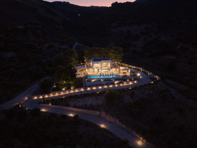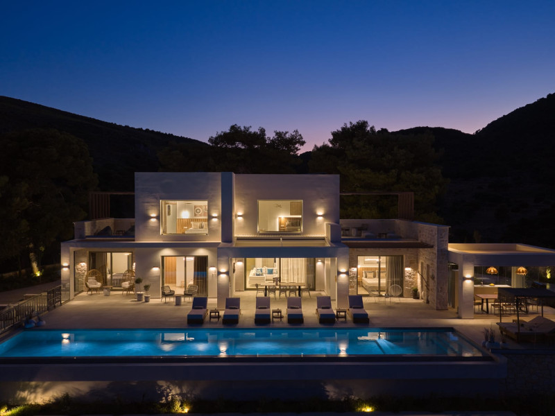 Segreto Del Lusso is a luxurious villa located in Kiliomenos, Zakynthos, offering an exclusive retreat with breathtaking sea and city views. Spanning 426m², the villa features seven elegantly designed bedrooms, two spacious living areas, a fully equipped kitchen, and modern amenities such as a private gym and home cinema. Guests can enjoy a large eco-friendly heated pool with hydromassage and counter-current swimming, as well as personalized services including private chef dining, massage treatments, and boat rentals. With its blend of comfort, elegance, and privacy, Segreto Del Lusso promises an unforgettable stay in the heart of Zakynthos.