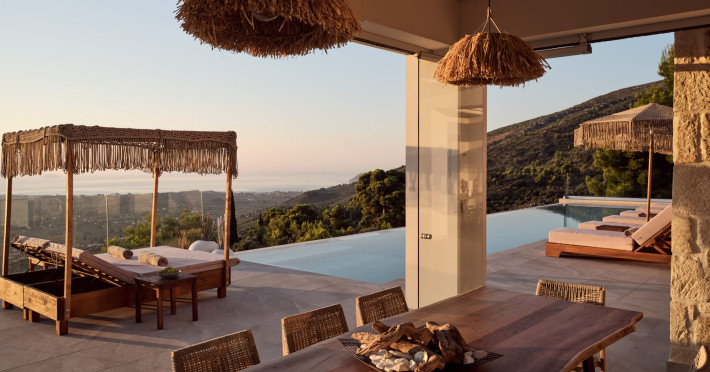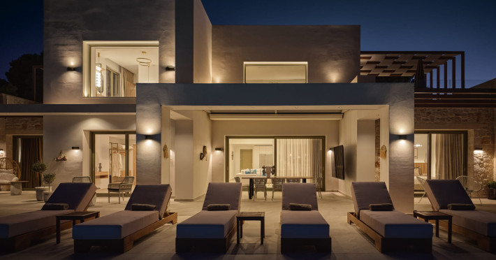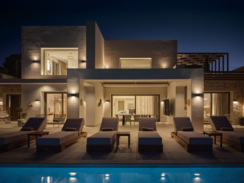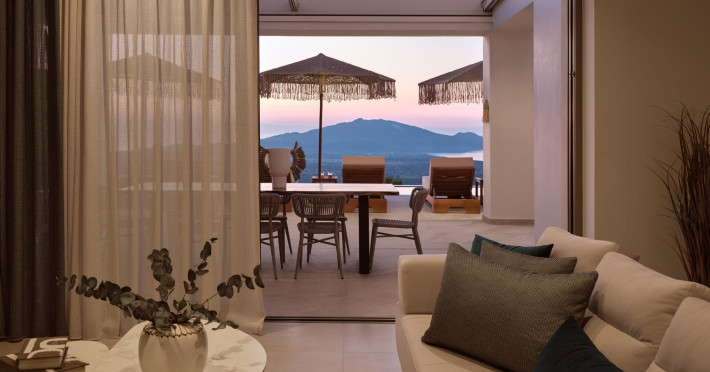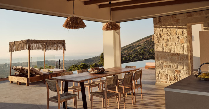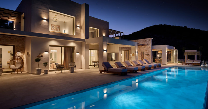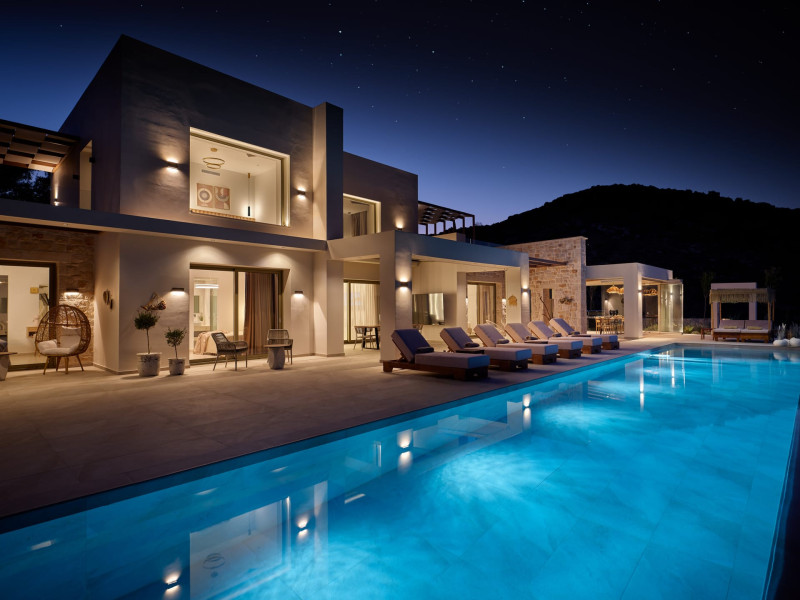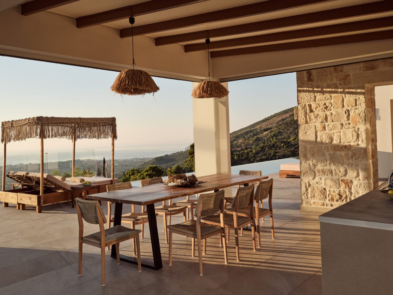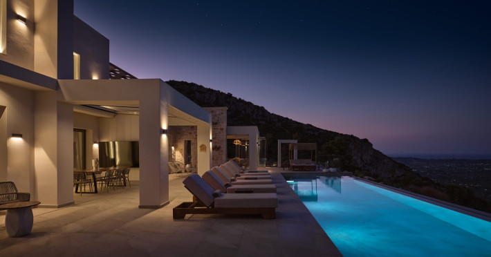 Segreto Del Lusso is a luxurious villa located in Kiliomenos, Zakynthos, offering an exclusive retreat with breathtaking sea and city views. Spanning 426m², the villa features seven elegantly designed bedrooms, two spacious living areas, a fully equipped kitchen, and modern amenities such as a private gym and home cinema. Guests can enjoy a large eco-friendly heated pool with hydromassage and counter-current swimming, as well as personalized services including private chef dining, massage treatments, and boat rentals. With its blend of comfort, elegance, and privacy, Segreto Del Lusso promises an unforgettable stay in the heart of Zakynthos.