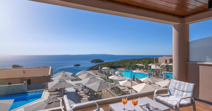 On the edge of land and sea, where the green turns blue, Sivota Diamond Spa Resort dominates. Built with stone and wood, combining traditional architecture and new style, it is a landmark for Sivota.