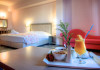 Dotari camere: Toate camerele sunt dotate cu baie cu cada sau dus, uscator de par, televizor, mini frigider, balcon sau terasa, aer conditionat, seif (contra cost, aprox 3 EUR/zi), acces internet WiFi (aprox 5 EUR/zi).