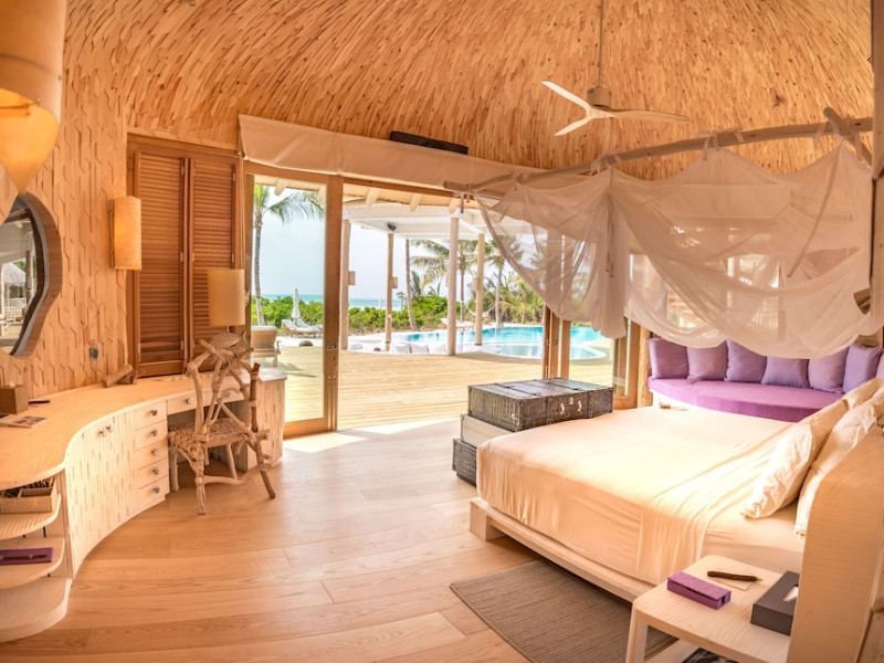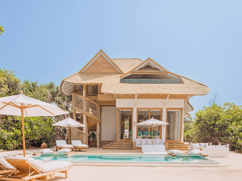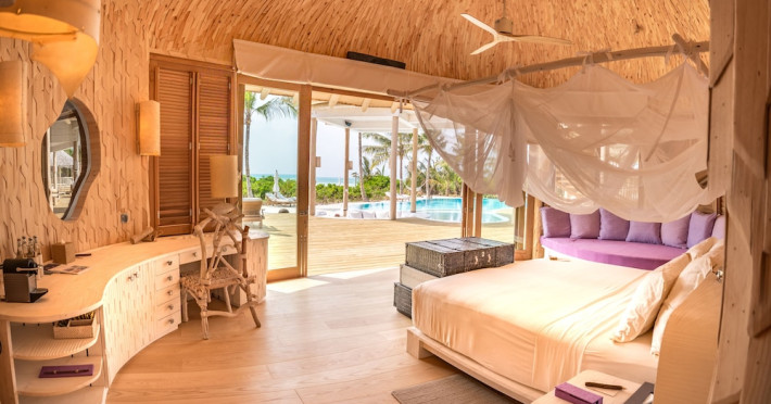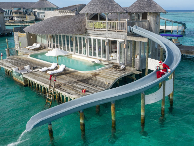 Soneva Jani, located in the Medhufaru lagoon in the Noonu Atoll, comprises five islands, the largest of which is Medhufaru, which is 150 acres in size. The resort can be reached by a scenic 40 minute seaplane flight direct from Malé International Airport, a 60 minute speedboat ride from Soneva Fushi, or by a leisurely half day cruise from Soneva Fushi on-board Soneva in Aqua. The Soneva Jani Resort is a hotel.