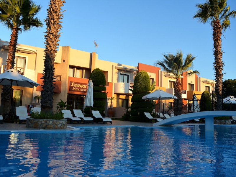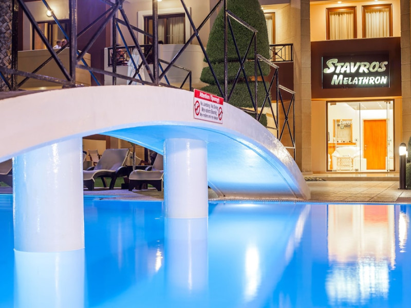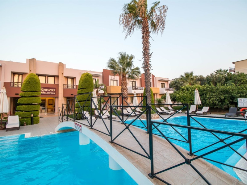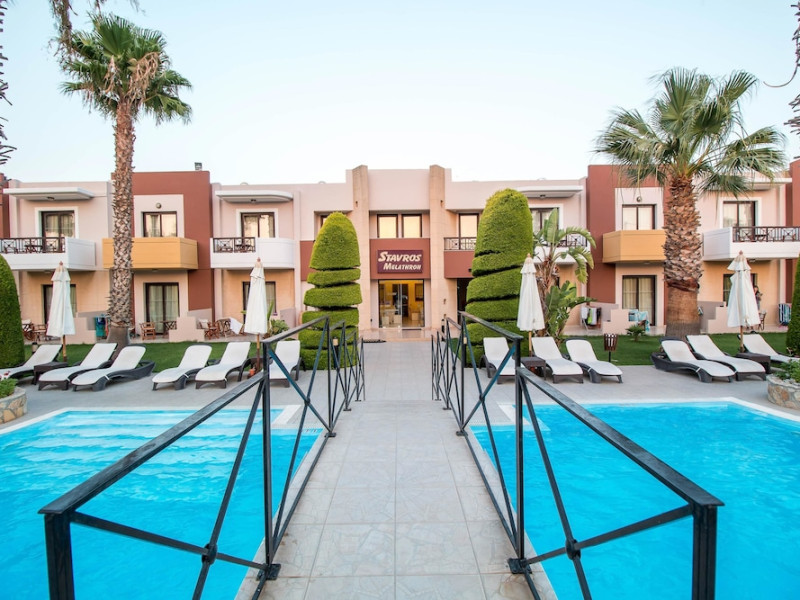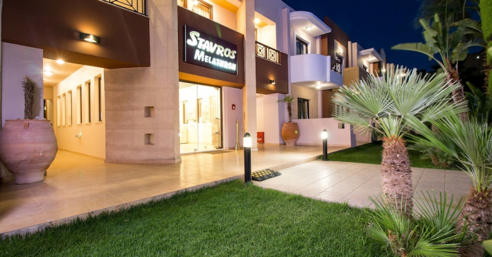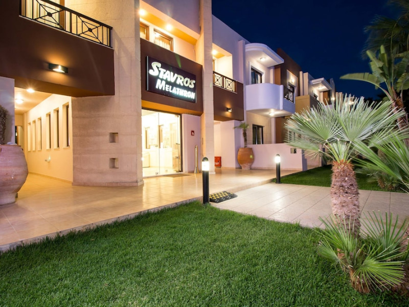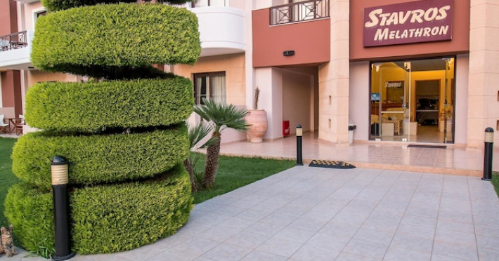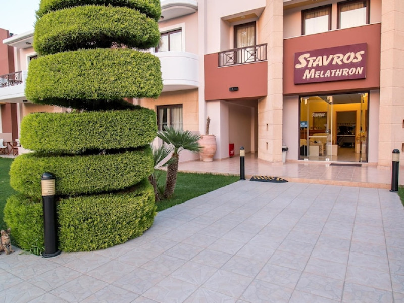 Hotelul Stavros Melathron, situat într-un peisaj înverzit, la numai 200 de metri de plaja Reni din din satul Koskinou, insula Rodos, pune la dispoziţie o piscină în aer liber. Studiourile oferă aer condiționat, Wi-Fi gratuit și balcon mobilat cu vedere la grădină.