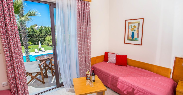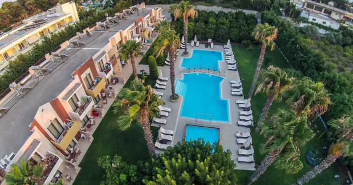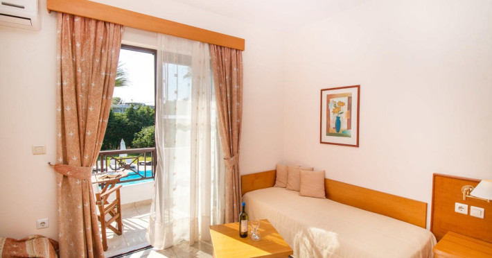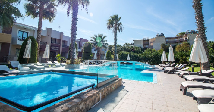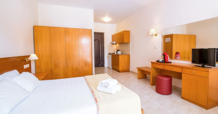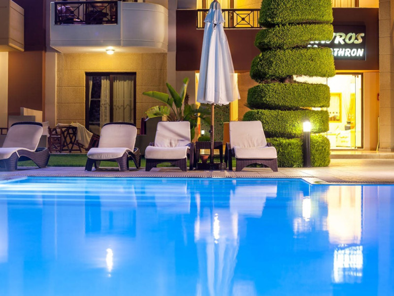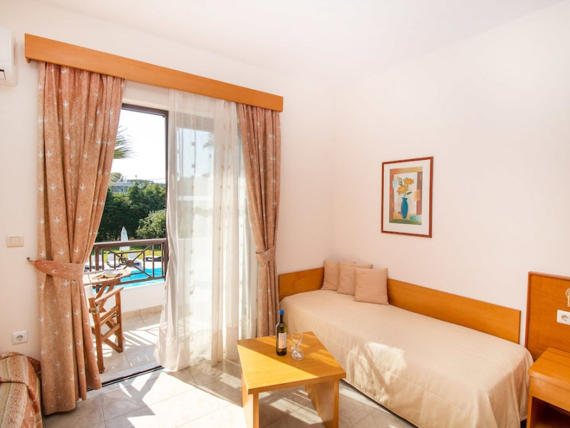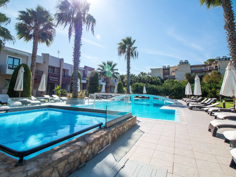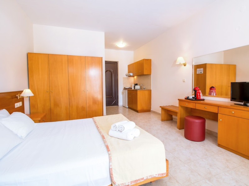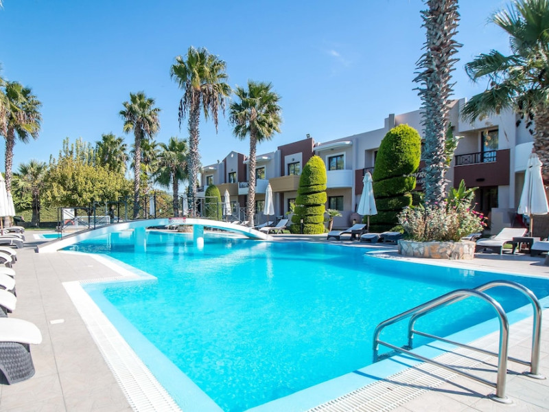 Facilities and services include free Wi-Fi, air conditioning, swimming pool, children's pool.Rooms feature free Wi-Fi, air conditioning, safe box, television, kitchenette, fridge, coffee/tea maker, hairdryer, telephone.- Please note that some of the above facilities may be closed due to weather / seasonal conditions.- Important Note: Reception with limited opening hours. Please advise flight number and estimated arrival time when booking this hotel.Address: 6th km Kallithea Av. Rhodes 85100, Rhodes, Dodecanese, Greece.