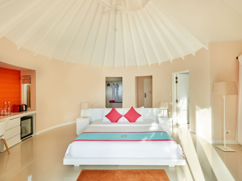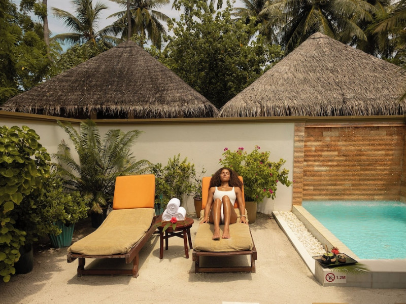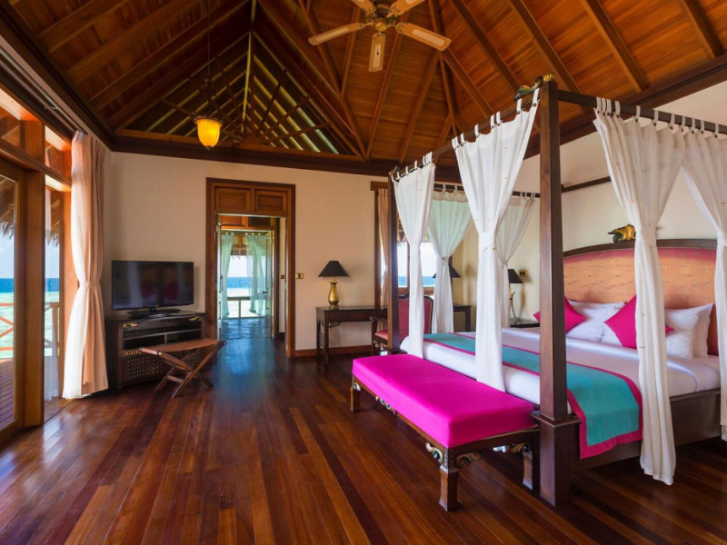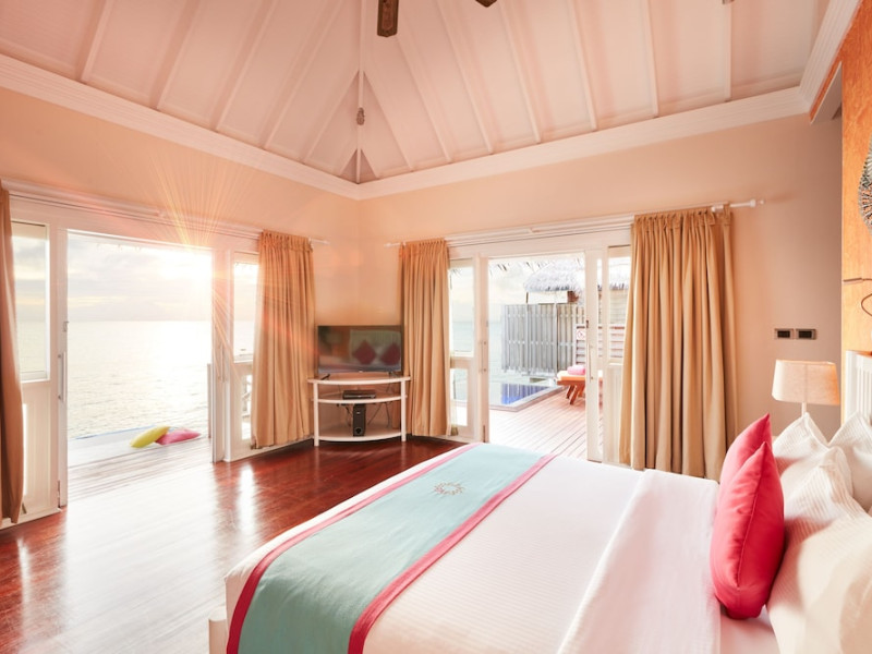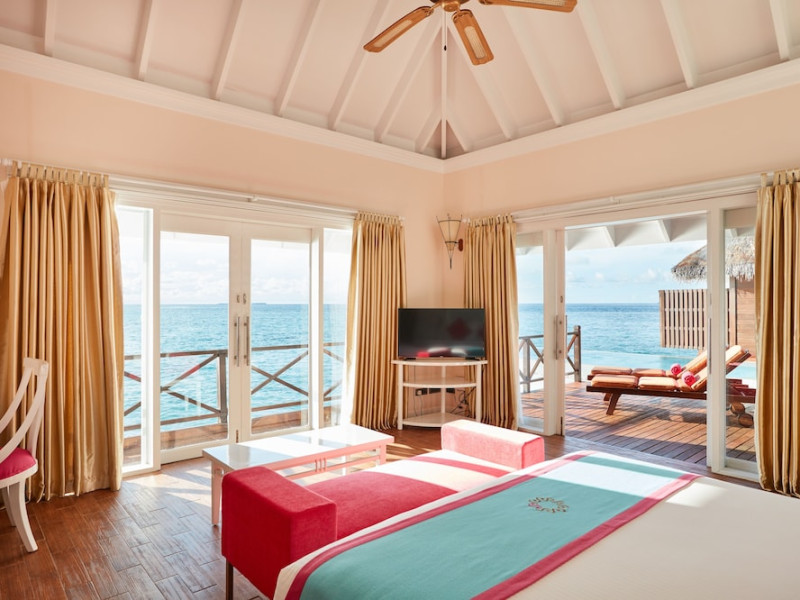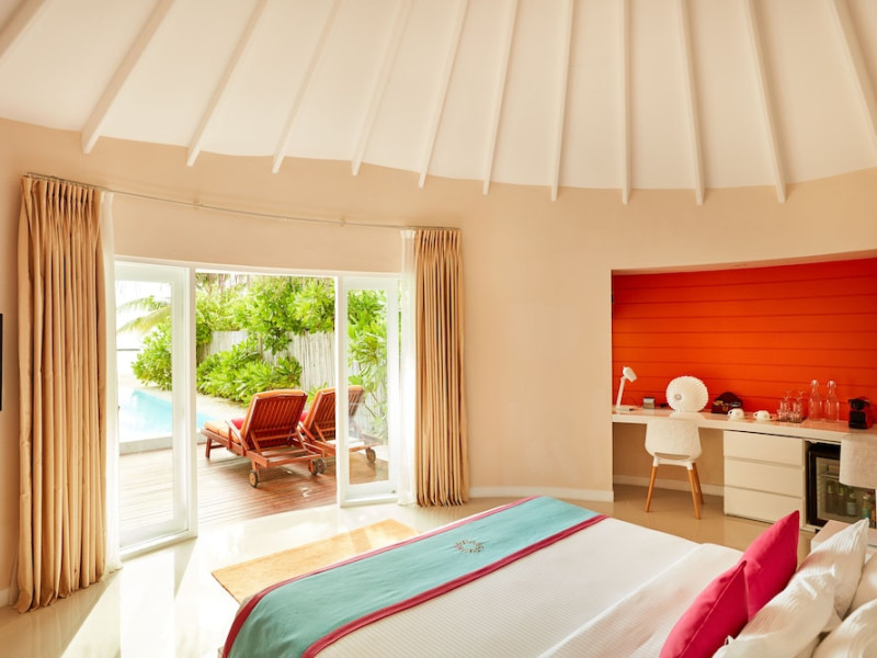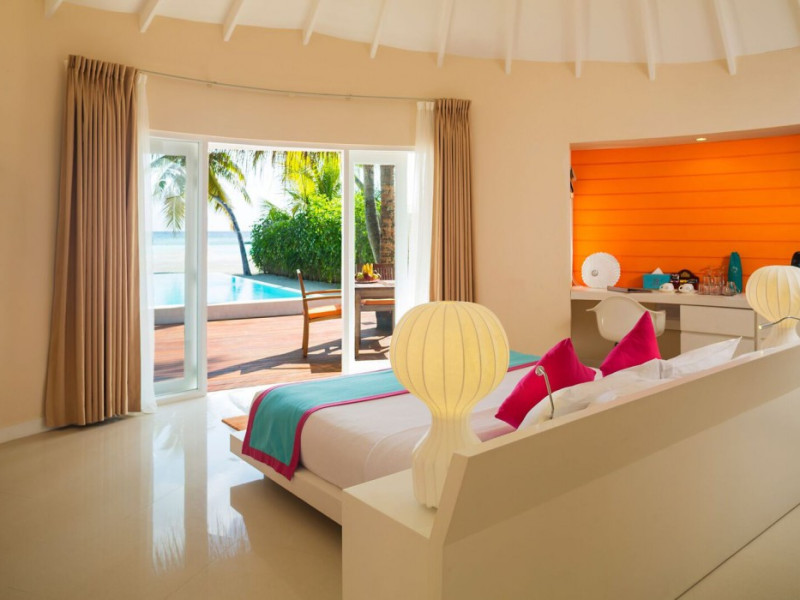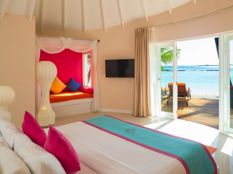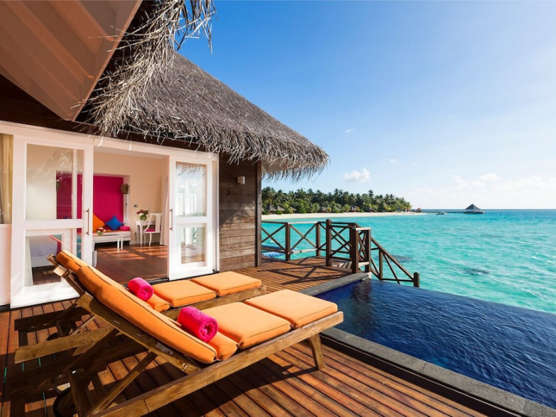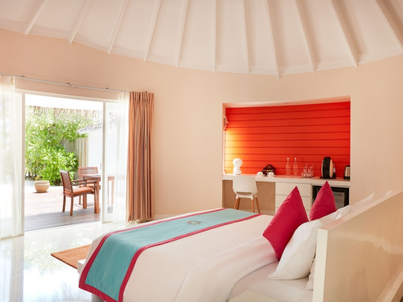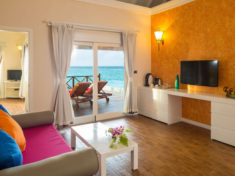 Sun Siyam Vilu Reef is a beachfront resort located on Vilu Reef in the Maldives, accessible via a 40-minute seaplane flight. Offering 103 air-conditioned rooms with minibars, DVD players, private furnished patios, 32-inch LED TVs with satellite programming, and complimentary Wi-Fi, the resort features three types of modern villas, including a Presidential Suite with traditional Maldivian décor and custom furnishings. Guests can enjoy a full-service spa with massages, body treatments, and facials, an outdoor pool, a hot tub, an outdoor tennis court, and snorkeling opportunities around natural reefs. Two restaurants offer international cuisine, and room service is available during limited hours. Two bars/lounges are also available. Additional amenities include complimentary wired internet access, dry cleaning/laundry services, a 24-hour front desk, concierge services, babysitting (surcharge), and free self parking. All-inclusive rates are available, including meals and beverages at onsite dining establishments (some exclusions may apply). A roundtrip airport shuttle is available for a surcharge. The resort is close to Meedhuffushi Island Beach, Meedhuffushi Island Pier, and Meedhoo Harbour.