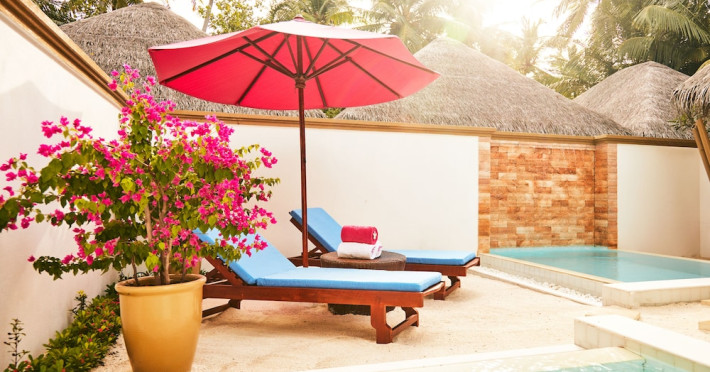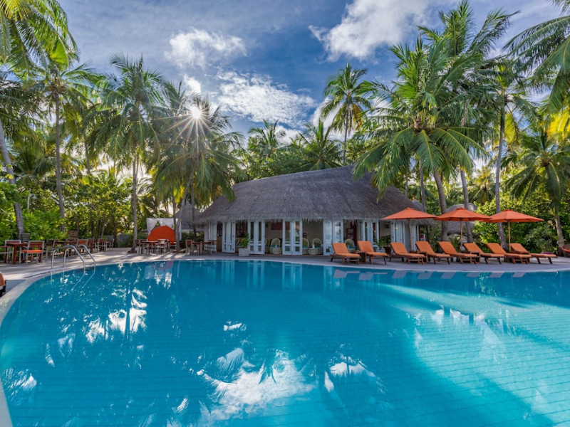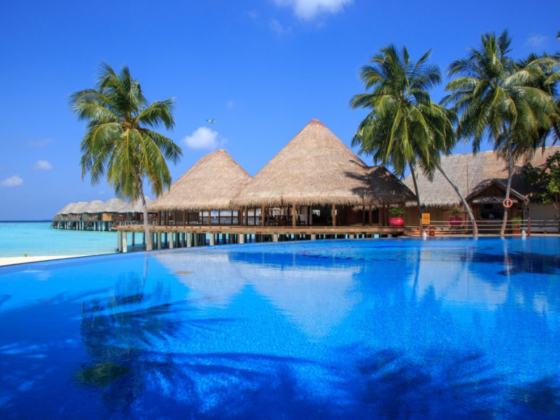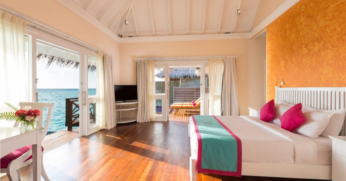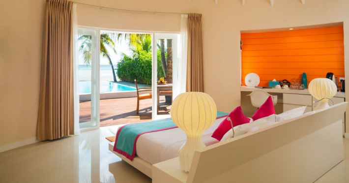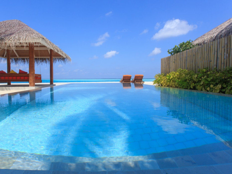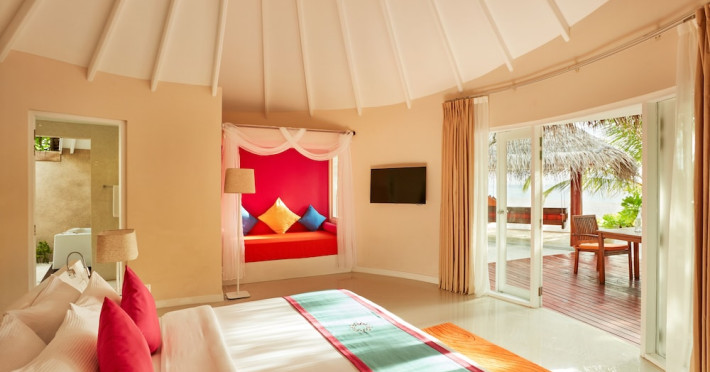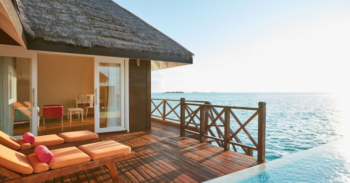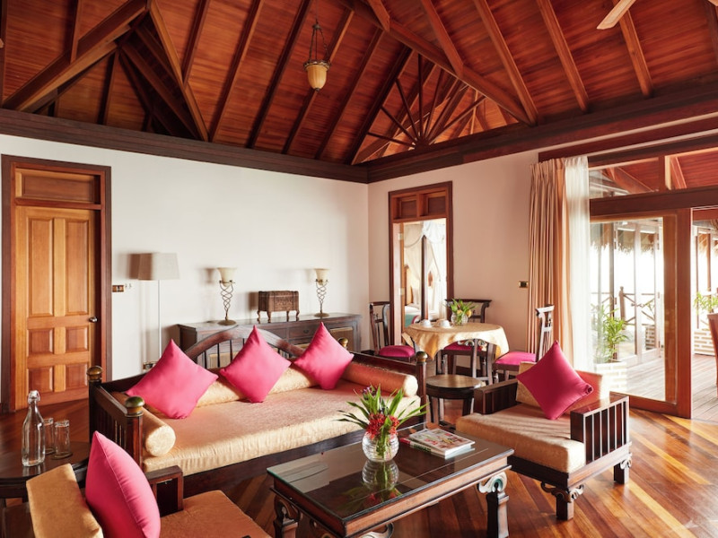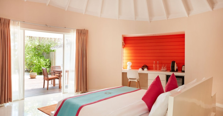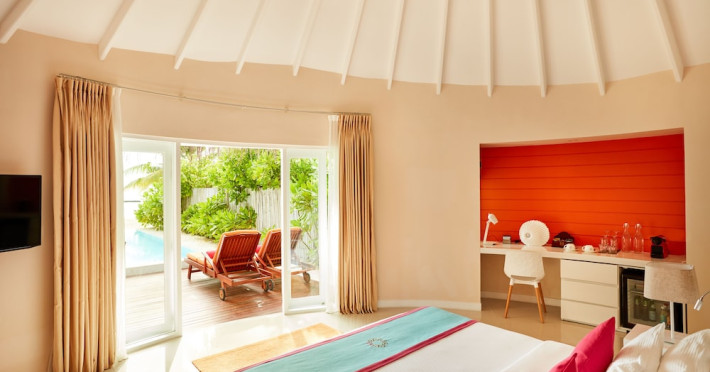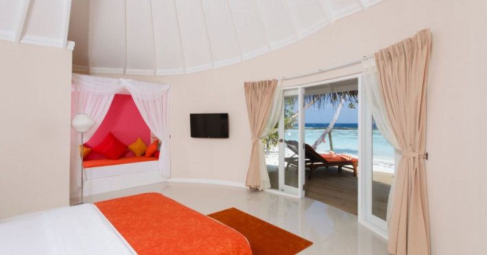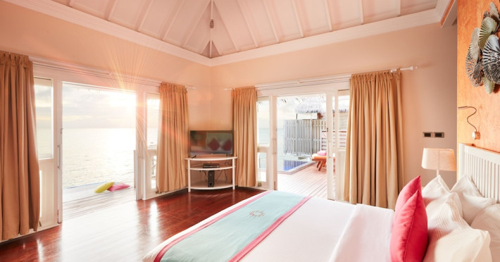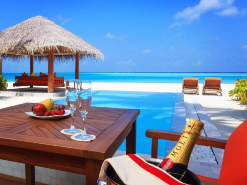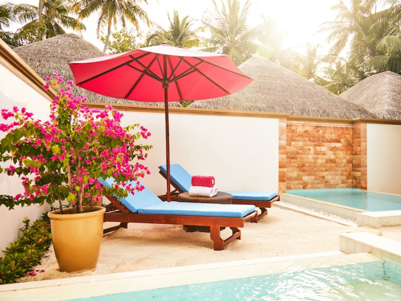 Sun Siyam Vilu Reef is a beachfront resort located on Vilu Reef in the Maldives, accessible via a 40-minute seaplane flight. Offering 103 air-conditioned rooms with minibars, DVD players, private furnished patios, 32-inch LED TVs with satellite programming, and complimentary Wi-Fi, the resort features three types of modern villas, including a Presidential Suite with traditional Maldivian décor and custom furnishings. Guests can enjoy a full-service spa with massages, body treatments, and facials, an outdoor pool, a hot tub, an outdoor tennis court, and snorkeling opportunities around natural reefs. Two restaurants offer international cuisine, and room service is available during limited hours. Two bars/lounges are also available. Additional amenities include complimentary wired internet access, dry cleaning/laundry services, a 24-hour front desk, concierge services, babysitting (surcharge), and free self parking. All-inclusive rates are available, including meals and beverages at onsite dining establishments (some exclusions may apply). A roundtrip airport shuttle is available for a surcharge. The resort is close to Meedhuffushi Island Beach, Meedhuffushi Island Pier, and Meedhoo Harbour.
