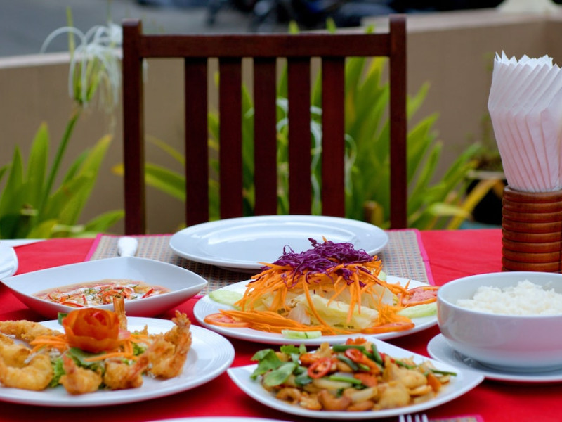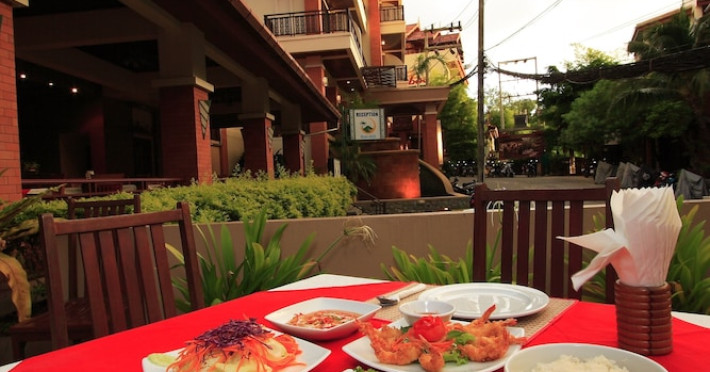 Restaurantul Sunset serveşte diverse preparate thailandeze şi internaţionale. De asemenea, sunt oferite gustări uşoare şi cocktailuri răcoritoare.
