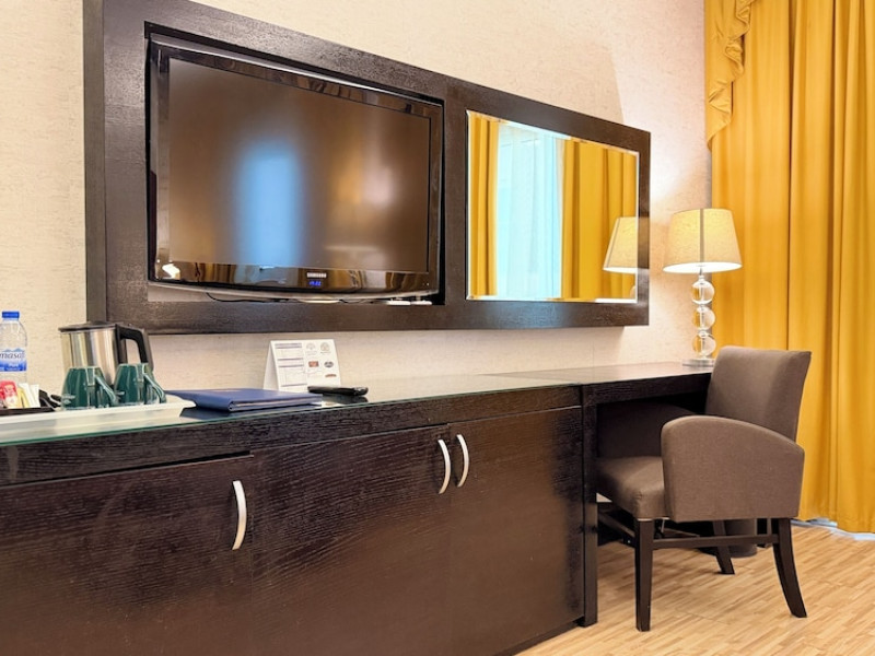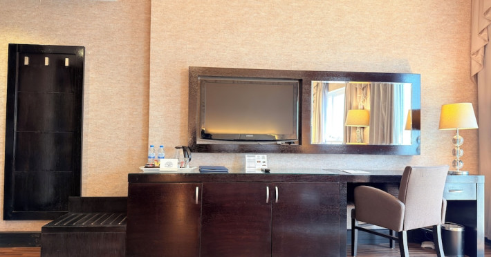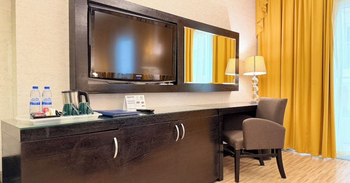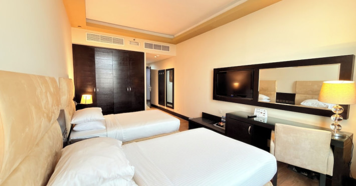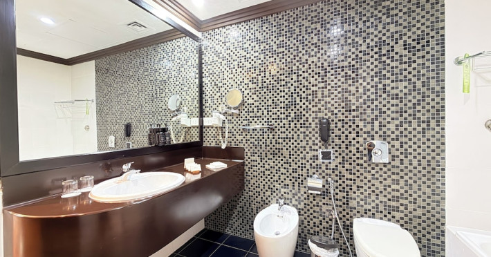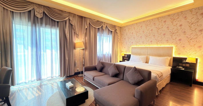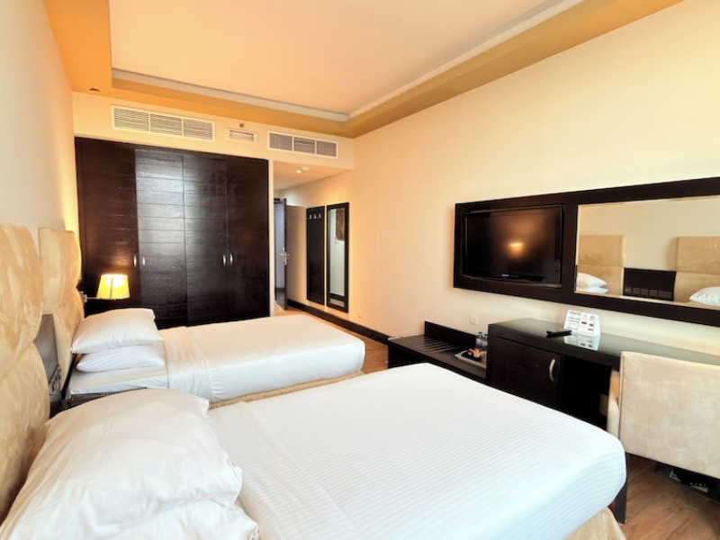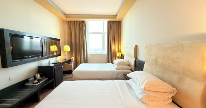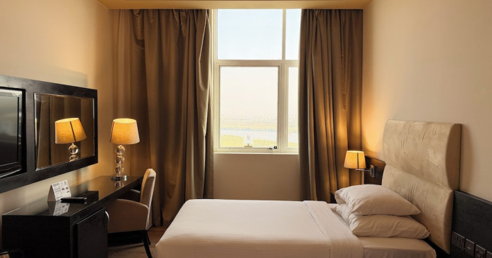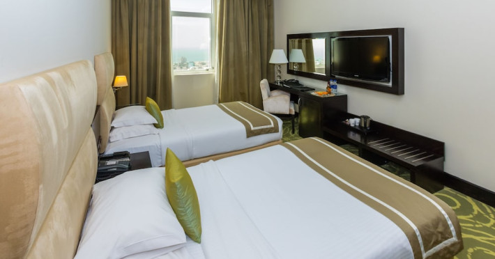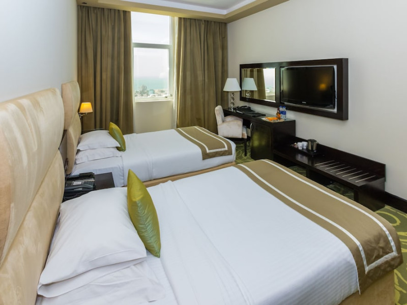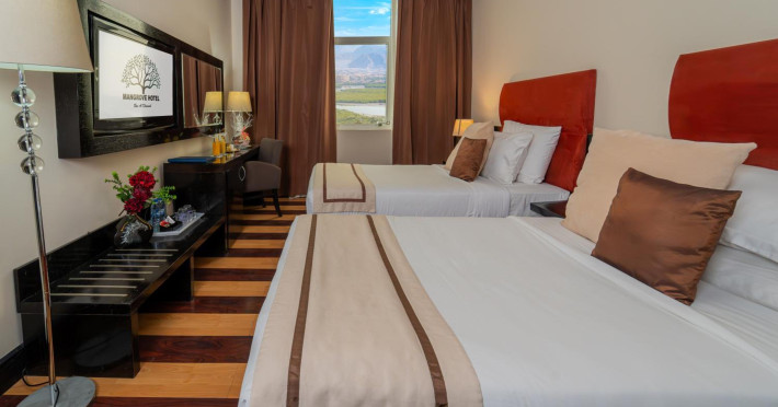 Facing the creek of Ras Al Khaimah, the Sunday Mangrove Corniche Hotel, Ras Al Khaimah offers elegantly decorated rooms and suites. It features a swimming pool, free WiFi in public areas and a restaurant offering panoramic views of the creek. Each air-conditioned unit at the Mangrove has a flat-screen TV with satellite channels. All of them have a private bathroom, a safety deposit box, and a telephone. Some suites include a balcony. Guests can enjoy the all-day dining restaurant. A second restaurant offers Chinese specialities. The on-site coffee shop also offers shisha pipes. The multilingual staff at the tour desk can help guests to prepare their visit to the region. Al Safir Shopping Mall is just 5 minutes’ walk away. The local airport is located a 10-minute drive away, whilst Dubai International Airport is an hour drive away. A shuttle service is available upon request.