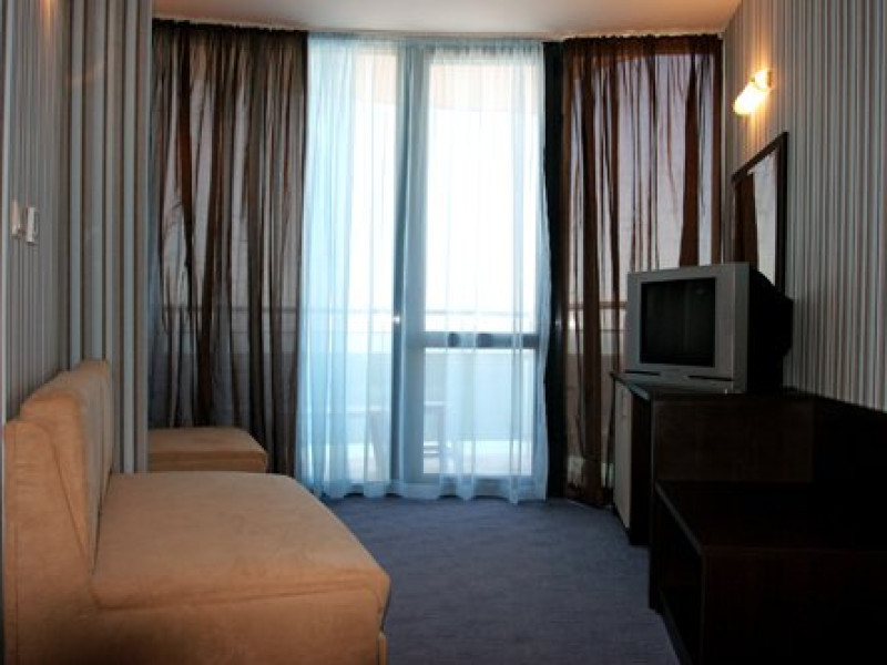 Hotelul Sunny Bay este situat in statiunea de la malul marii din Pomorie pe malul marii si ofera conditii ideale pentru o vacanta de vara sau un weekend placut langa Marea Neagra. In spatele exteriorului sau incantator modern, puteti gasi camere si apartamente mobilate cu gust si complet echipate, precum si un restaurant confortabil, care serveste specialitati delicioase din bucataria bulgara si preparate din bucataria internationala. Explorati orasul pitoresc vechi din Pomorie, strangeti soarele pe plaja de nisip neteda si va plimbati in mare. Bourgas este la numai 20 km, iar aeroportul este la 8 km distanta. Fiecare terasa individuala are vedere la mare sau la centrul orasului Pomorie. Ascensor panoramic se deschide spre Nessebar si Sunny Beach.