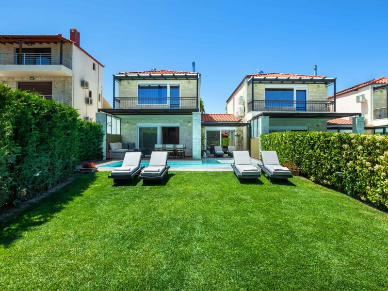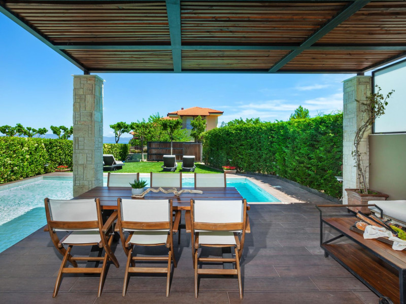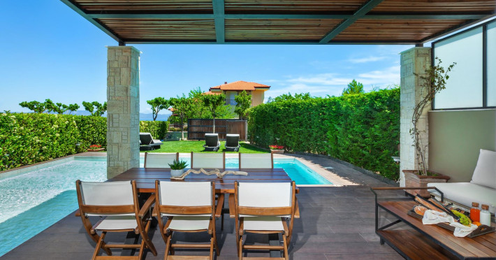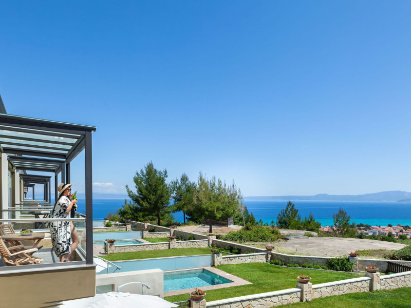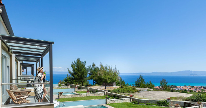Welcome to our enchanting complex of 11 luxurious villas, perched atop a hill overlooking the breathtaking bay of Toroneos. Get ready to immerse yourself in the ultimate summer vacation experience, where relaxation and rejuvenation take center stage.