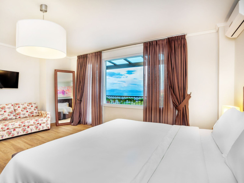 Imagine yourself basking in the sun beside your own private swimming pool and jacuzzi, where you can unwind and create cherished memories with your loved ones. As you soak in the stunning panoramic views of Hanioti village and the Toroneos bay, let the picturesque backdrop of Sithonia peninsula and the majestic Mount Athos transport you to a state of pure bliss.