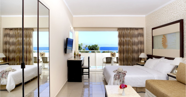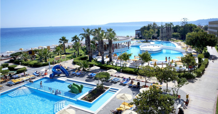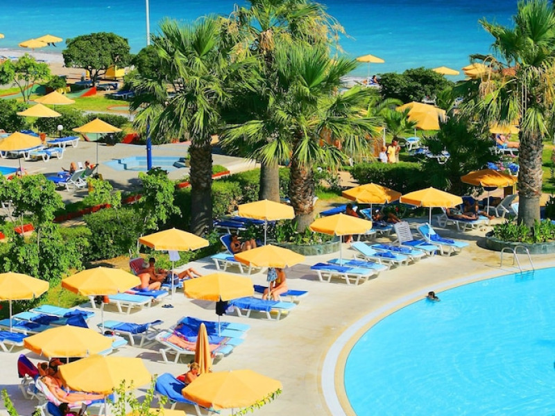 Near Stamatiadis Mineralogy and Paleontology Museum. With a stay at Sunshine Rhodes - All Inclusive in Rhodes, youll be on the beach, within a 15-minute drive of Rhodes Port and Stamatiadis Mineralogy and Paleontology Museum. This all-inclusive property is 0.5 mi (0.8 km) from Ialyssos Beach and 1.9 mi (3 km) from Bee Museum. Make yourself at home in one of the 371 guestrooms featuring refrigerators and LCD televisions. Rooms have private furnished balconies. Wireless internet access (surcharge) keeps you connected, and satellite programming is available for your entertainment. Bathrooms have complimentary toiletries and hair dryers. This property is all inclusive. Rates include meals and beverages at onsite dining establishments. Charges may be applied for dining at some restaurants, special dinners and dishes, some beverages, and other amenities. Satisfy your appetite with international cuisine at Dionissos Main Restaurant, one of the propertys 2 restaurants. Wind down with a drink at one of the 4 bars/lounges or 3 poolside bars. Practice your swing on the golf course or dip into one of the 4 outdoor swimming pools. Additional features at this property include complimentary wireless internet access, concierge services, and babysitting (surcharge).