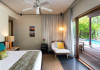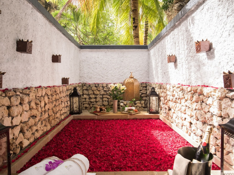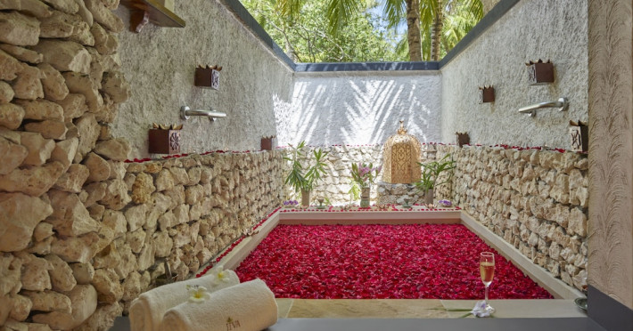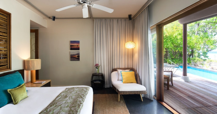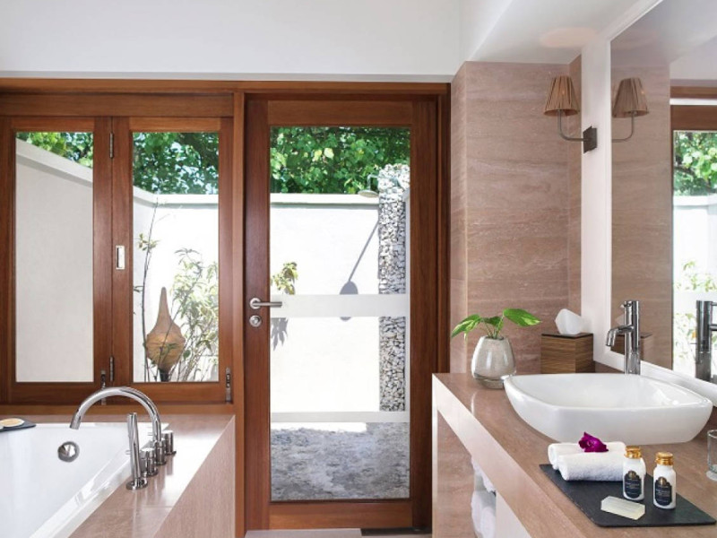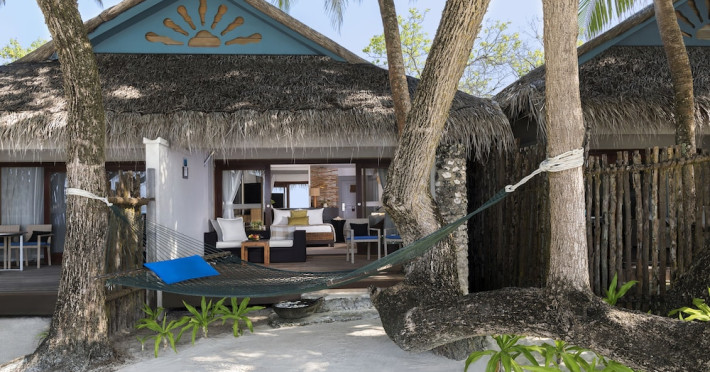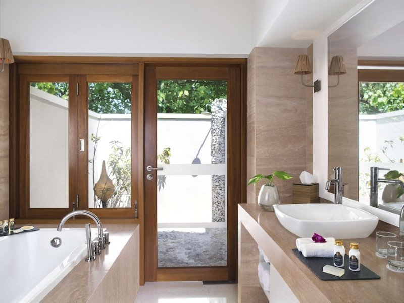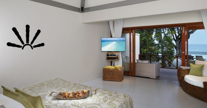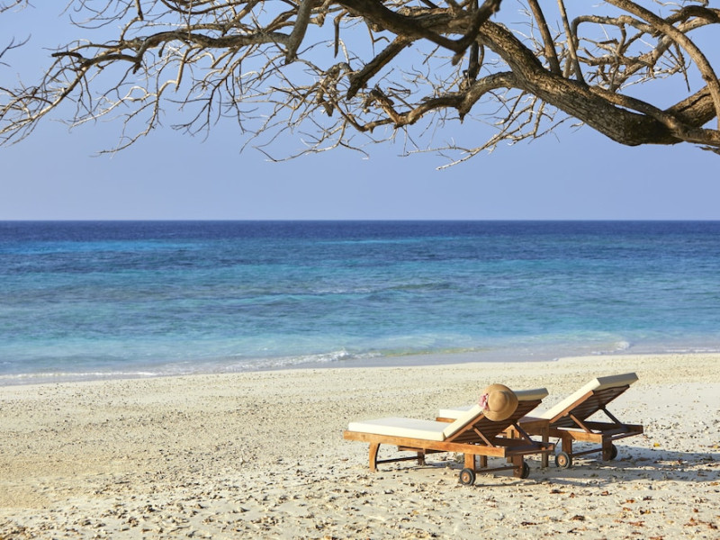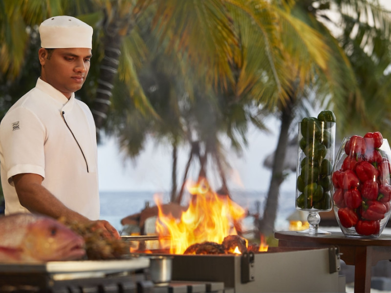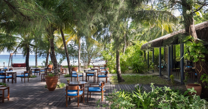 Vivanta by Taj Coral Reef, Maldives, a luxury resort located on Hembadhu Island in the North Malé Atoll, offers stylish villas with breathtaking ocean views and stunning sunsets. The resort is a 45-minute speedboat ride from Malé Airport. Villas feature 32-inch flat-screen TVs with satellite programming, minibars stocked with organic food and beverages, private patios, and memory foam beds. Amenities include a full-service spa, outdoor pool, steam room, complimentary Wi-Fi, concierge services, a fitness center, a dive school, and an arcade/game room. Dining options include two restaurants (Bokkura and Open - The Grill, offering Pan Asian and Italian/Japanese cuisine respectively), room service (limited hours), and a poolside bar. All-inclusive rates are available, though some restaurants, special dinners, beverages, and amenities may incur extra charges. Nearby beaches include Vabbininfaru Beach (0.7 km) and Angsana Beach (1 km). Water activities such as snorkeling and fish feeding are available, along with island hopping trips. The Taj Coral Reef Resort and Spa is a Beach Resort, Honeymoon, Modern, Resort, Tourist hotel. Located in North Male Atoll area. The nightlife/restaurants are located in the hotel.