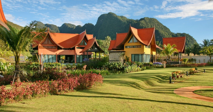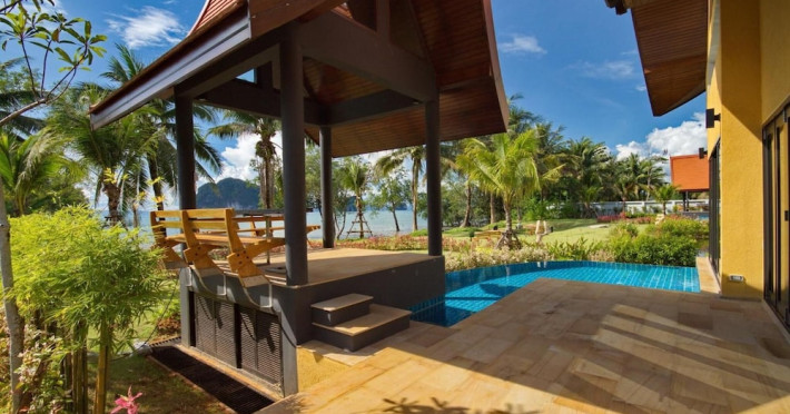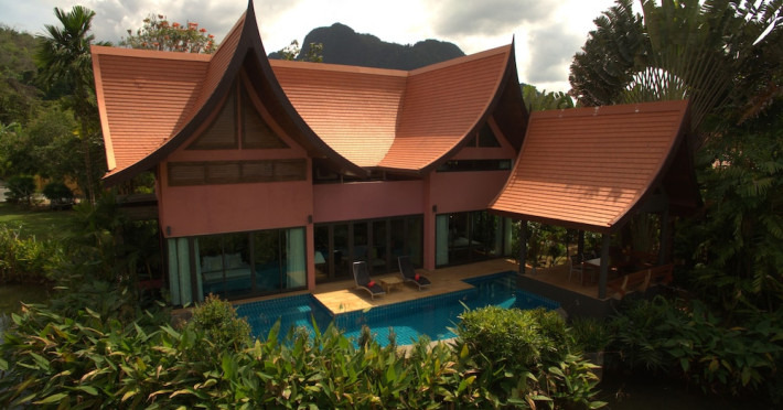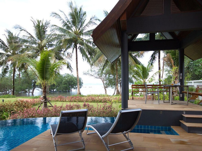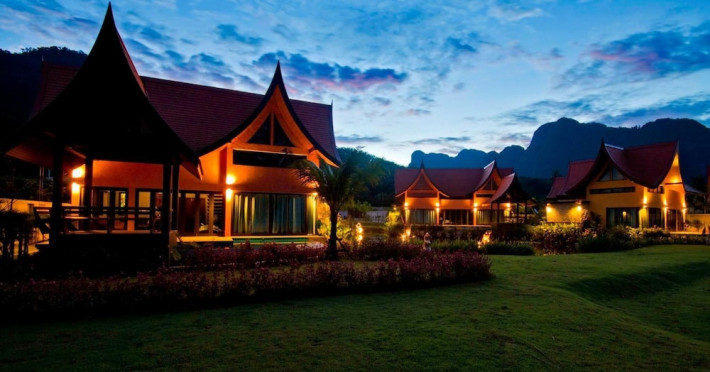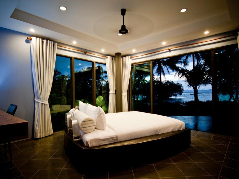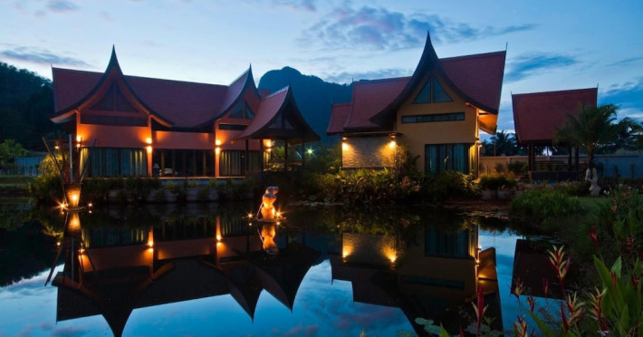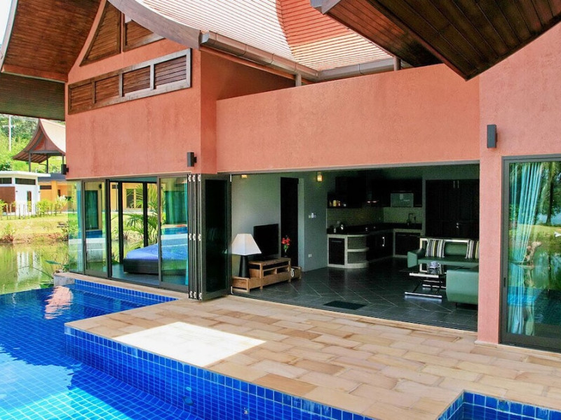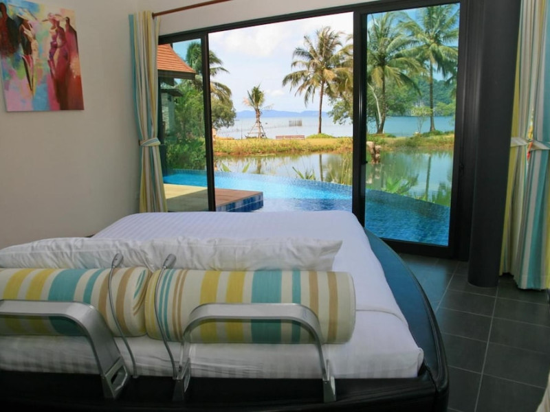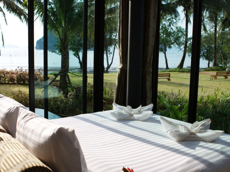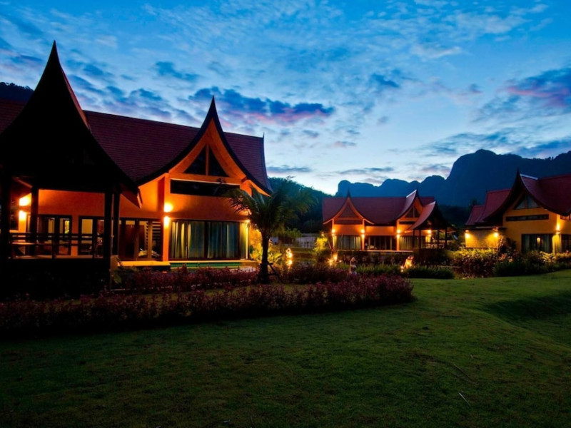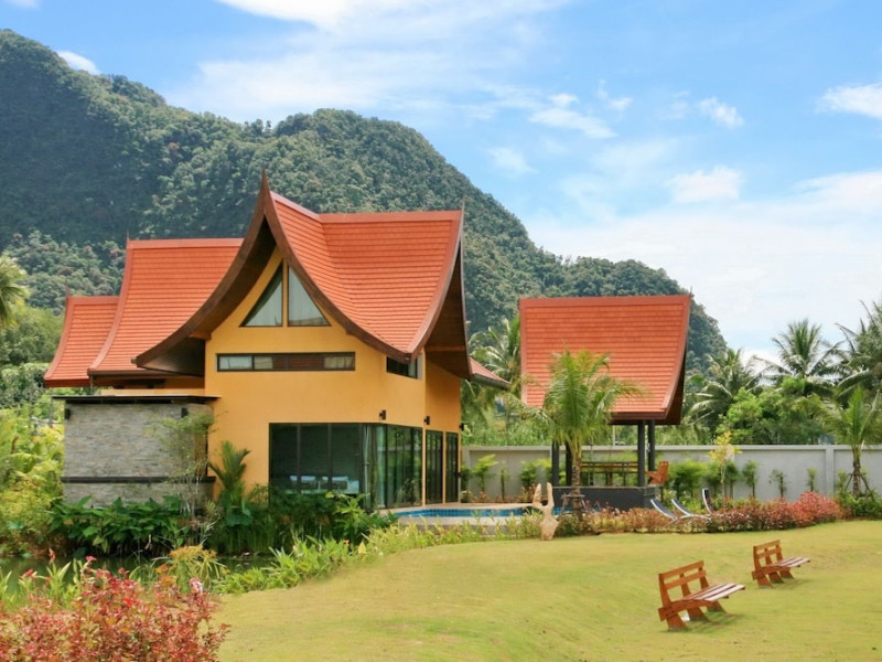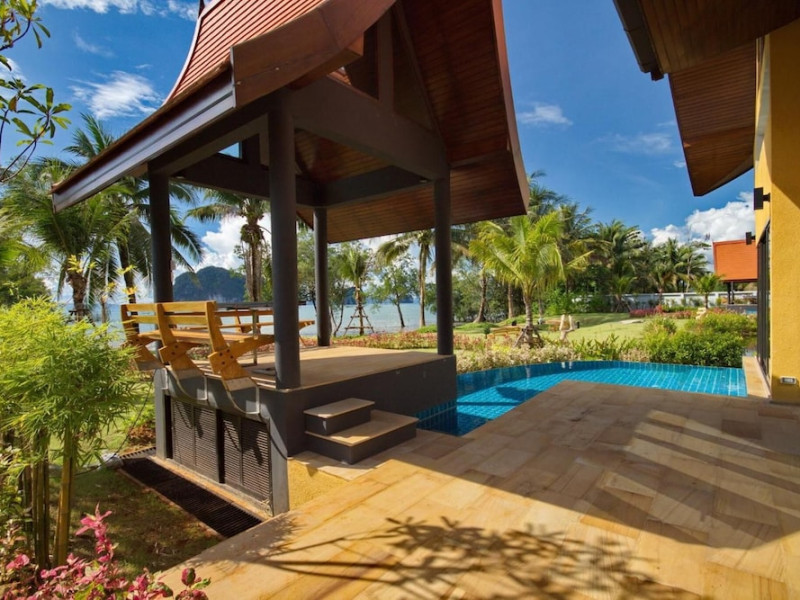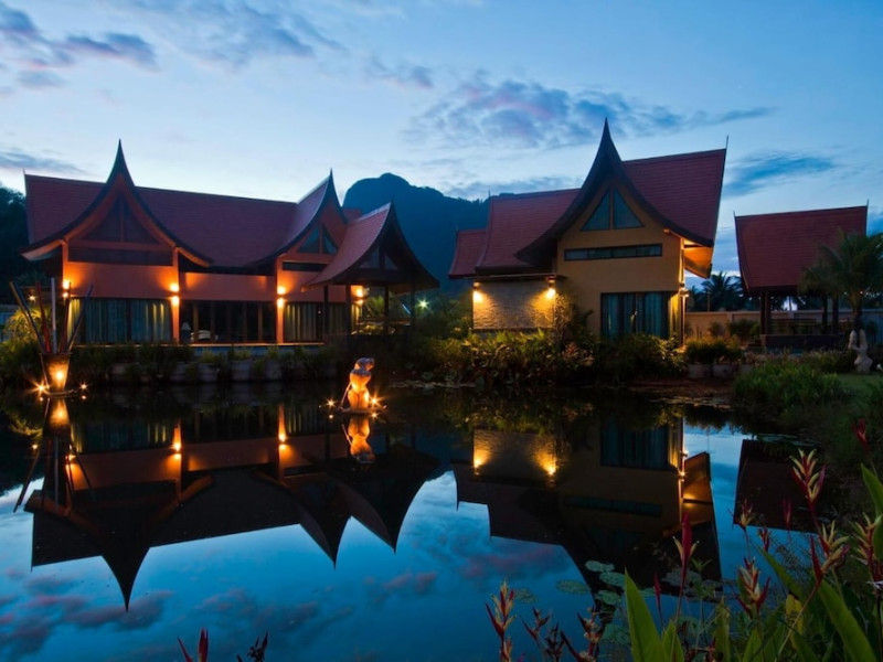 THA LANE BAY VILLAS Boutique Hotel offers spacious two and three-bedroom villas near Krabi Town and Ao Nang, with views of Phang Nga Bay. Each air-conditioned villa features a private overflow pool, large living areas, a fully equipped kitchen, full-length sliding doors, and an oceanfront sala (open pavilion). Amenities include satellite TV, DVD player, and free WiFi. Guests can enjoy Thai and Western cuisine at the "Delights" restaurant, with in-villa dining available. Thai cooking demonstrations and tour arrangements can be organized. Relax with massage services, take a stroll in the garden, or use the sea kayaks. The Two-Bedroom Villa accommodates 4 adults and 1 child, while the Three-Bedroom Villa accommodates 6 adults and 1 child. Services include room service (limited hours), concierge services, babysitting (surcharge), laundry services, luggage storage, and an airport shuttle (surcharge). Free self-parking is available. Krabi International Airport is approximately 35 km away. The Tha Lane Bay Villas is a hotel. Located in KRABI area.
