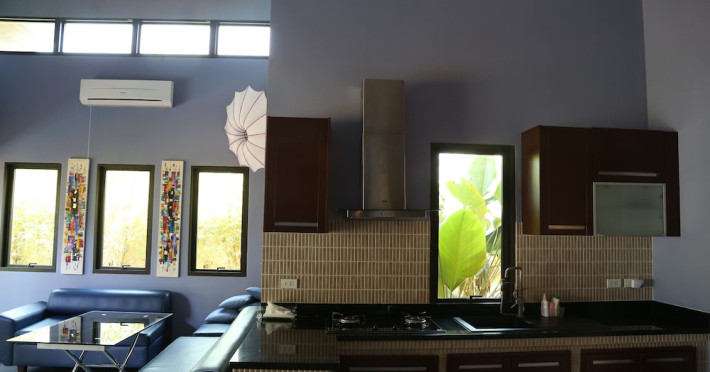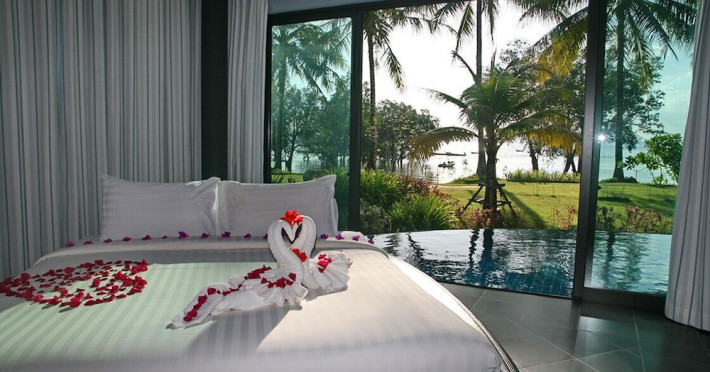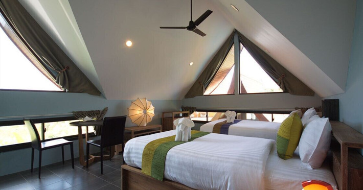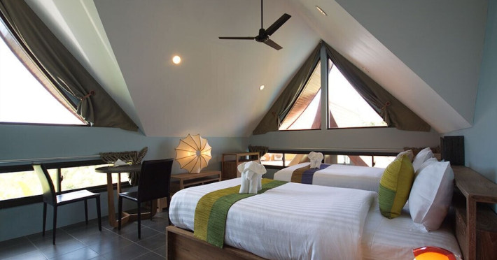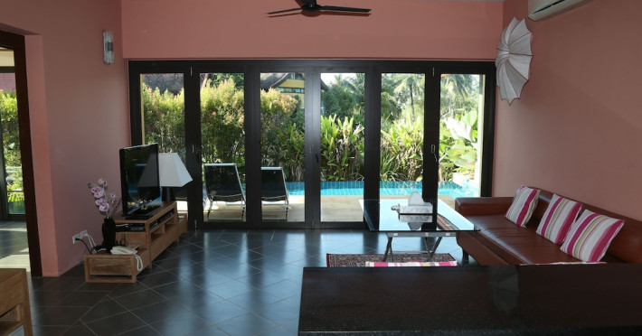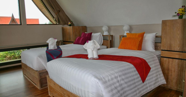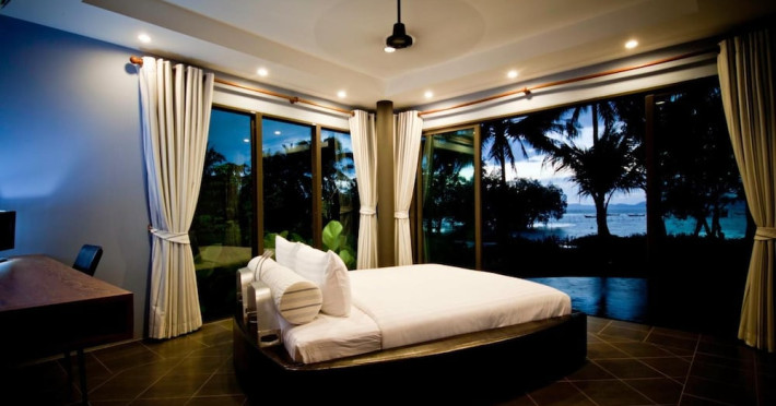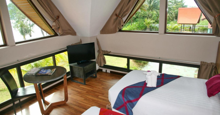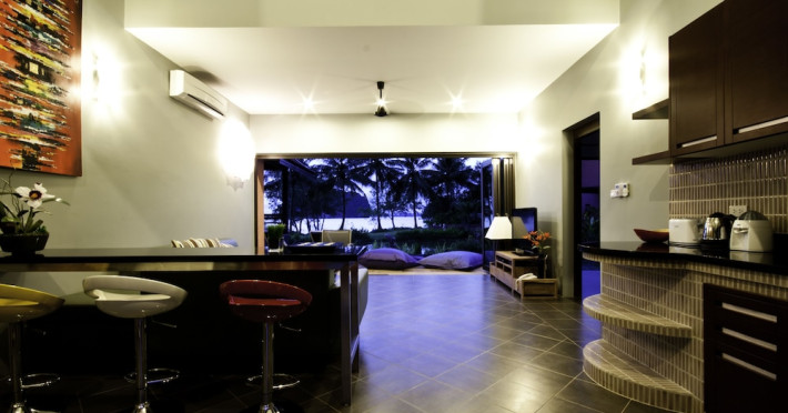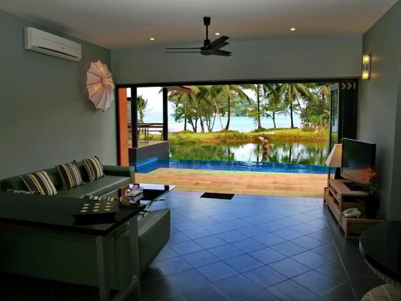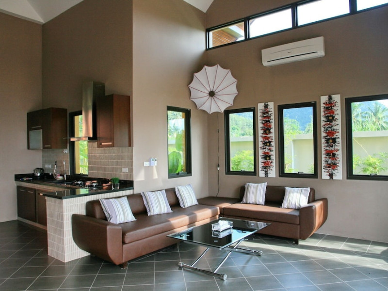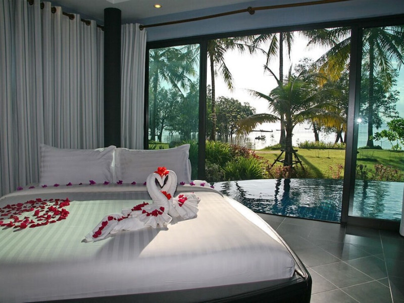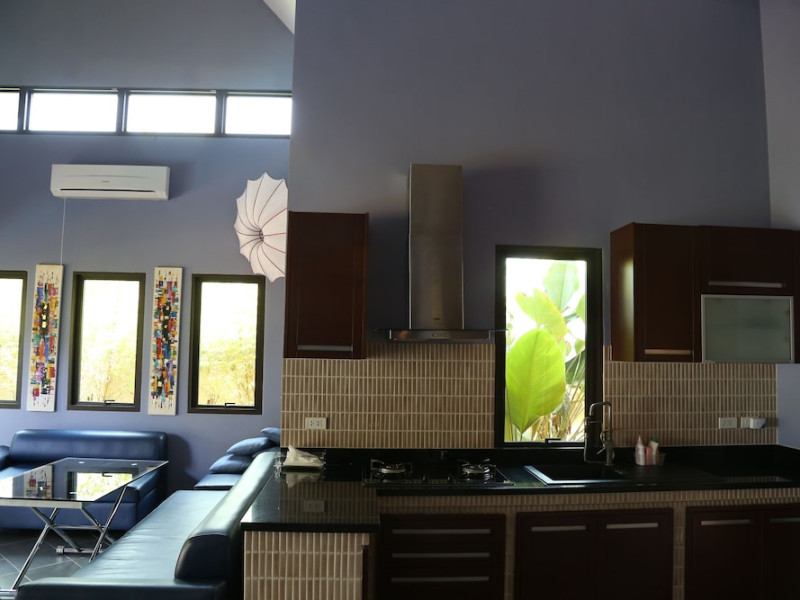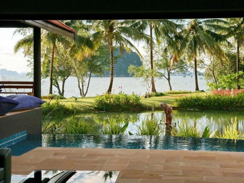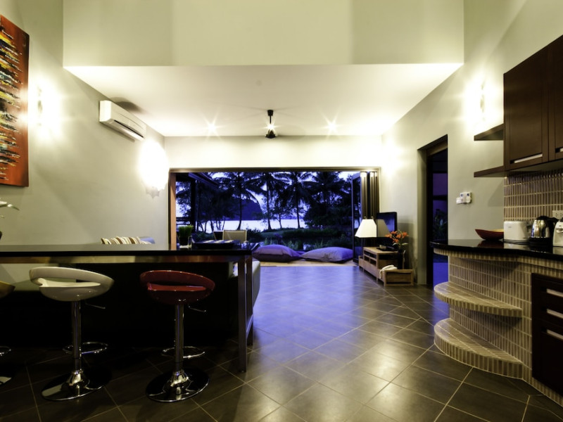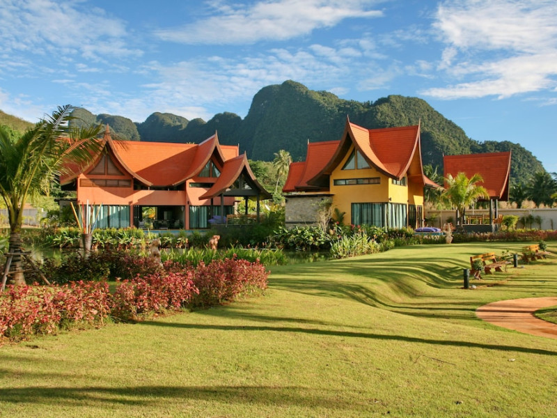 THA LANE BAY VILLAS Boutique Hotel offers spacious two and three-bedroom villas near Krabi Town and Ao Nang, with views of Phang Nga Bay. Each air-conditioned villa features a private overflow pool, large living areas, a fully equipped kitchen, full-length sliding doors, and an oceanfront sala (open pavilion). Amenities include satellite TV, DVD player, and free WiFi. Guests can enjoy Thai and Western cuisine at the "Delights" restaurant, with in-villa dining available. Thai cooking demonstrations and tour arrangements can be organized. Relax with massage services, take a stroll in the garden, or use the sea kayaks. The Two-Bedroom Villa accommodates 4 adults and 1 child, while the Three-Bedroom Villa accommodates 6 adults and 1 child. Services include room service (limited hours), concierge services, babysitting (surcharge), laundry services, luggage storage, and an airport shuttle (surcharge). Free self-parking is available. Krabi International Airport is approximately 35 km away. The Tha Lane Bay Villas is a hotel. Located in KRABI area.