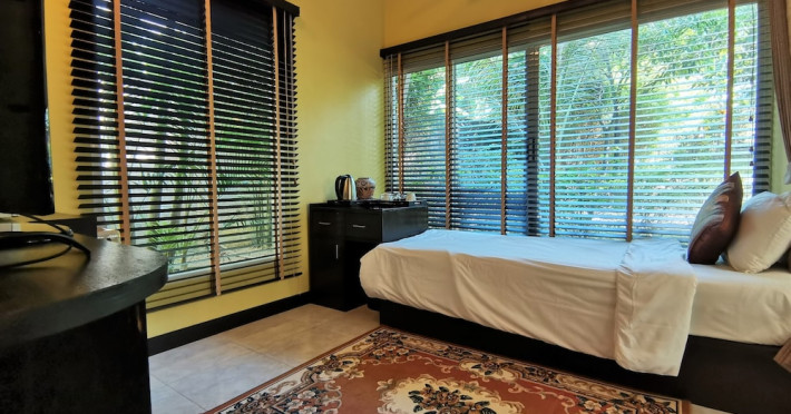 Located in Chalong, the Thai Modern Resort & Spa offers a relaxing getaway with complimentary Wi-Fi and free self-parking. The resort features indoor and outdoor pools, a fitness center, and a restaurant serving Thai and Western dishes. Continental breakfast is available for a fee. The 20 air-conditioned rooms include minibars, flat-screen TVs, and private bathrooms with complimentary toiletries. Guests can enjoy concierge services, dry cleaning/laundry services, and luggage storage. Airport transfer, taxi, car hire and shuttle services are available. Recreational amenities include a sauna, library, massage and solarium. The resort is a short drive from attractions such as Wat Chalong, Chalong Bay, and Big Buddha. The Thai Modern Resort and Spa is a hotel.